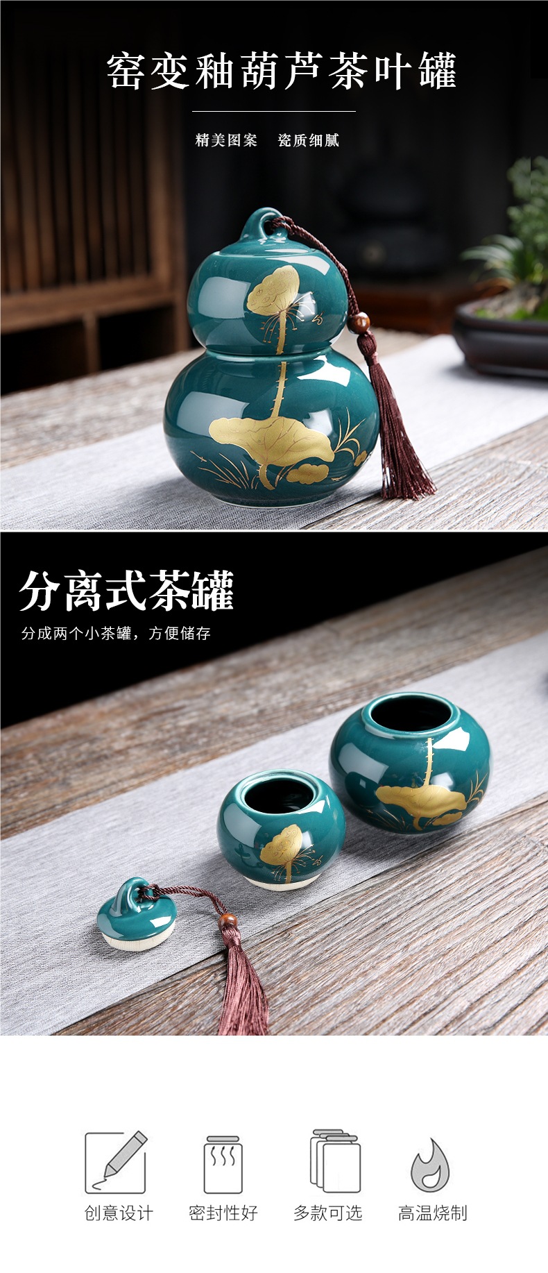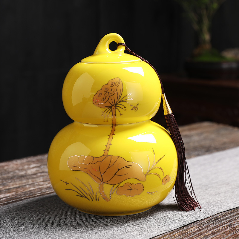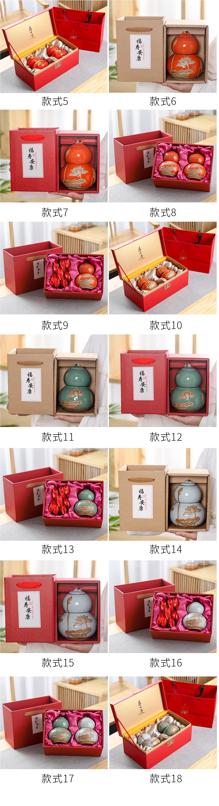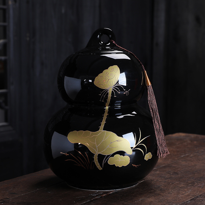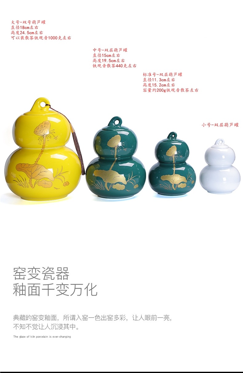 Folu 세라믹 조롱박 차 냄비 장식품 스몰 사이즈 가정용 대형 봉인 냄비 Pu'er 홍차 빈 포장 상자스토어 가기