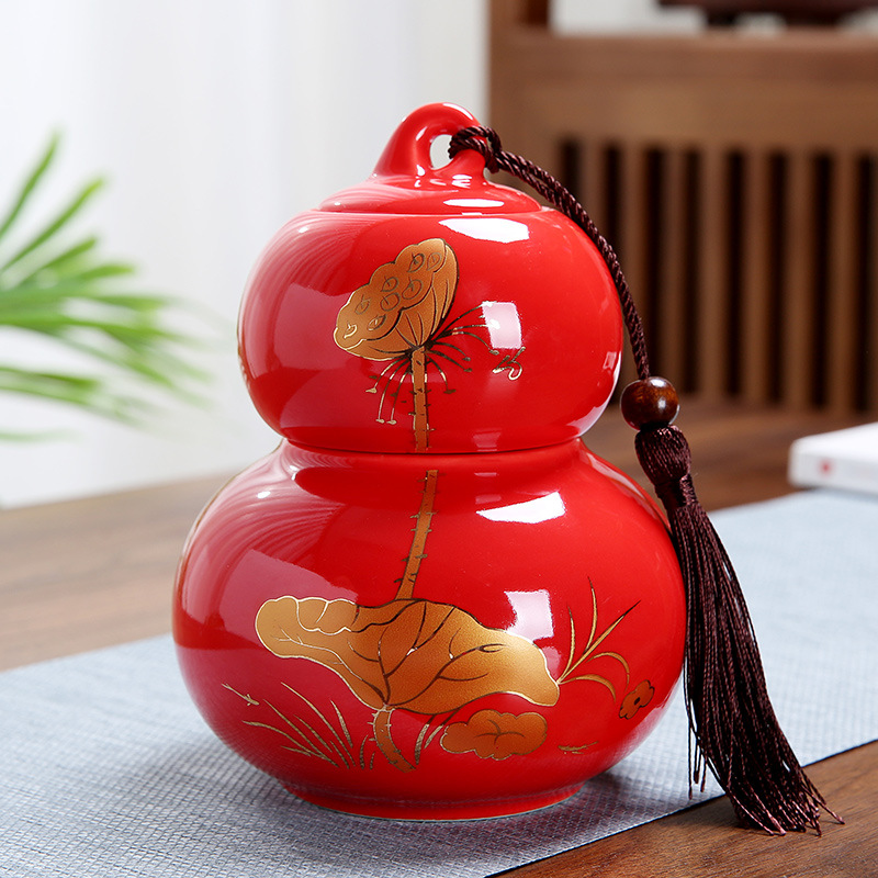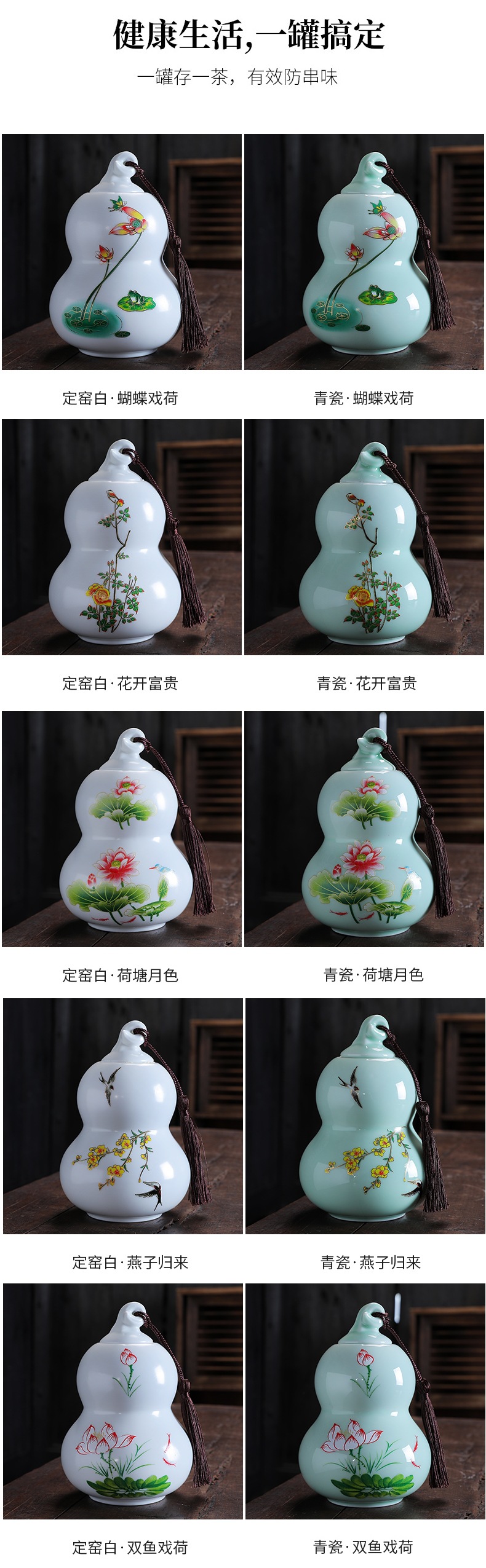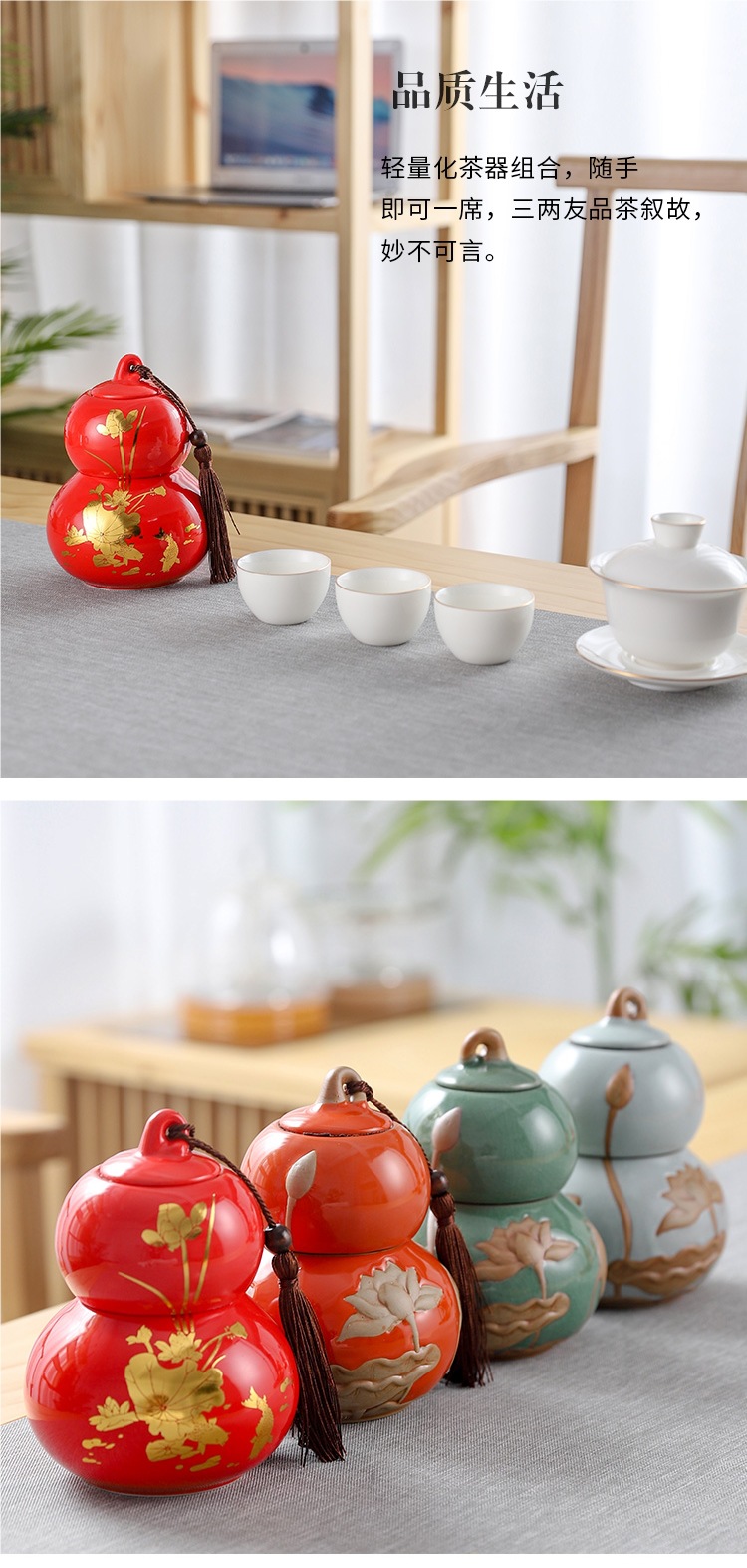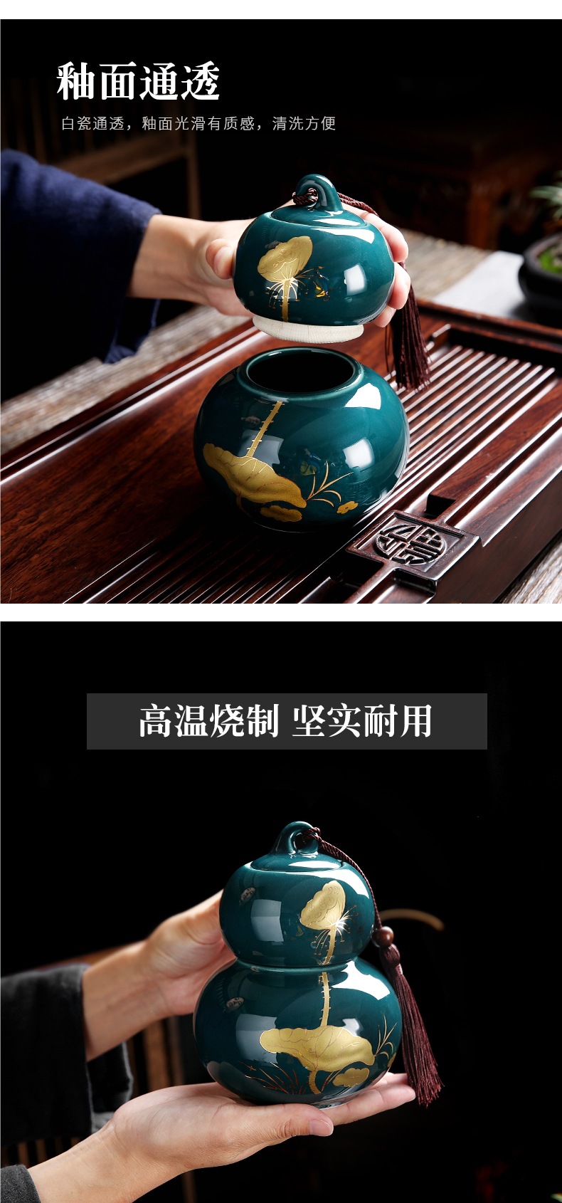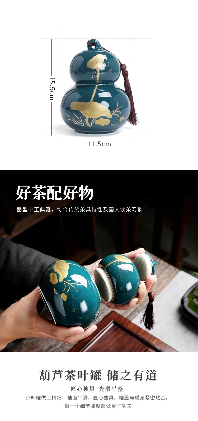 Folu 세라믹 조롱박 차 냄비 장식품 스몰 사이즈 가정용 대형 봉인 냄비 Pu'er 홍차 빈 포장 상자스토어 가기