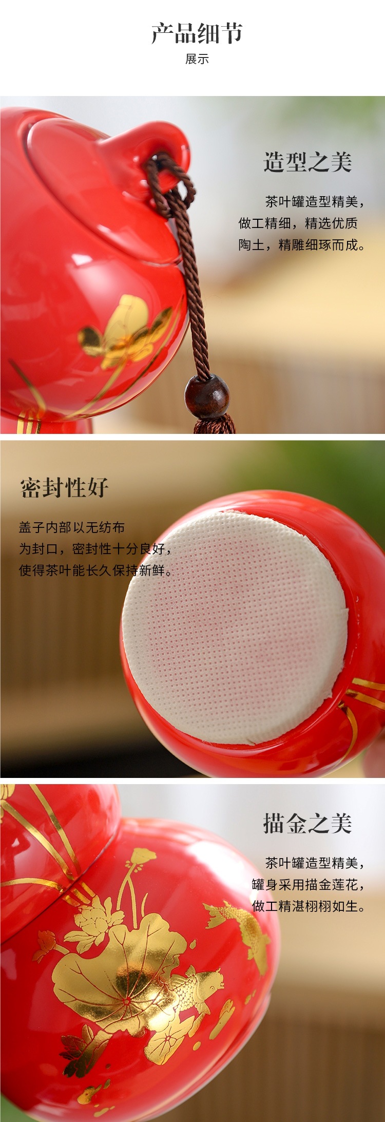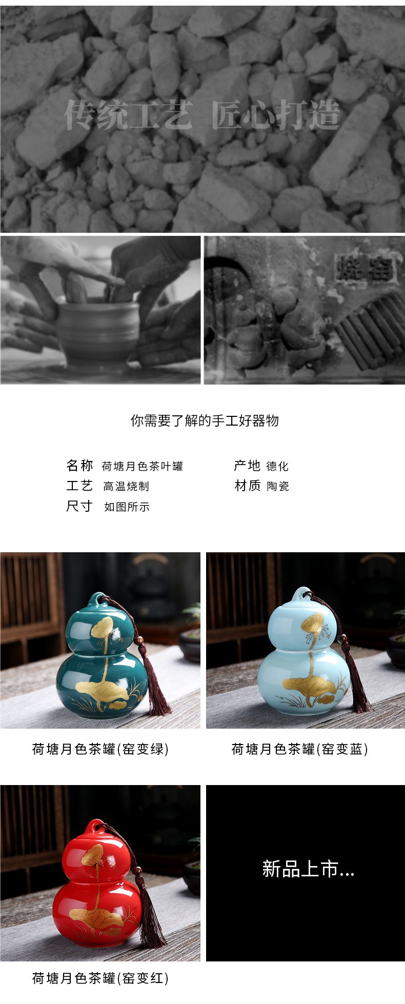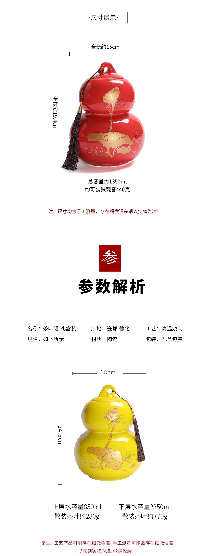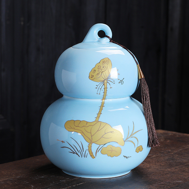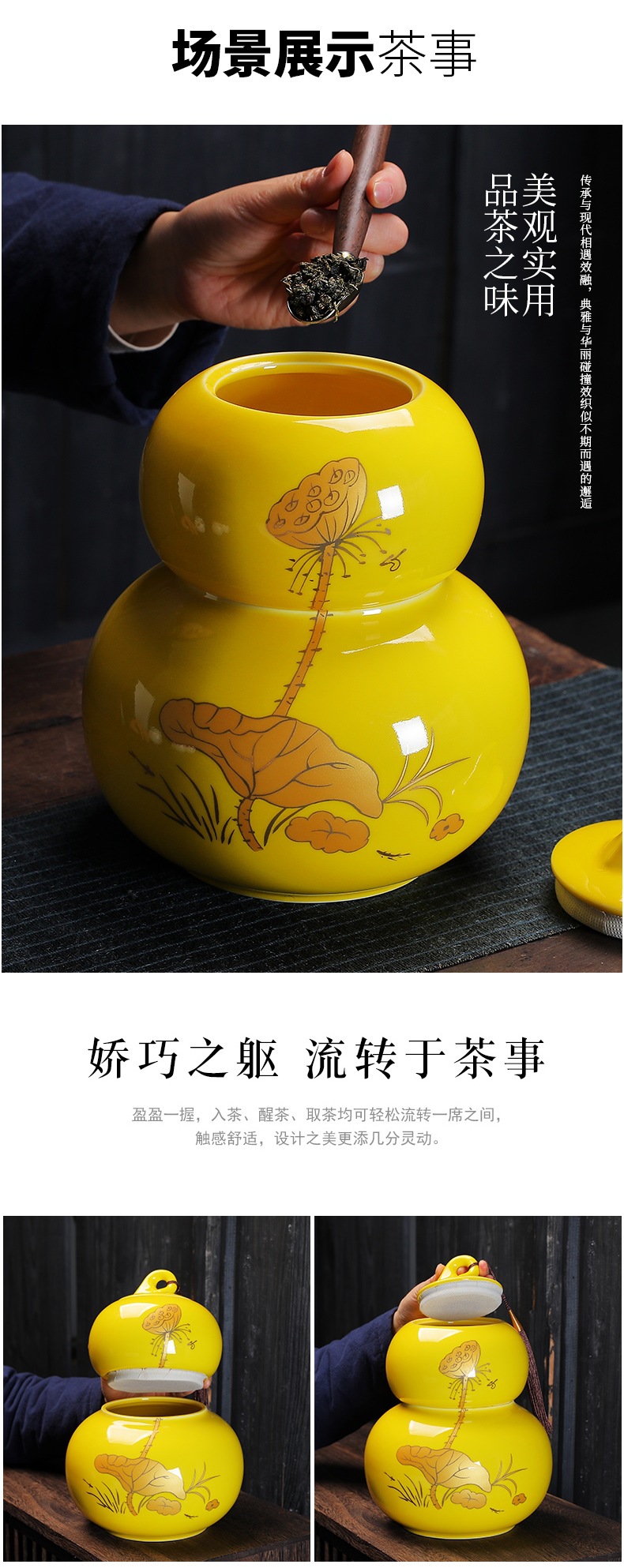 Folu 세라믹 조롱박 차 냄비 장식품 스몰 사이즈 가정용 대형 봉인 냄비 Pu'er 홍차 빈 포장 상자스토어 가기