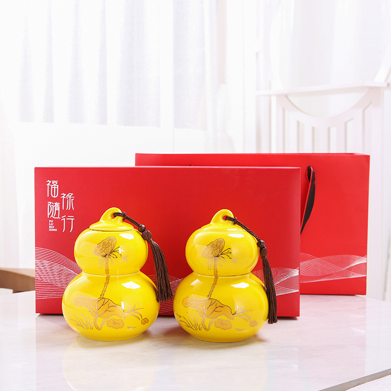 • 표준 조롱박 차 캔 노란색 선물 상자 2개