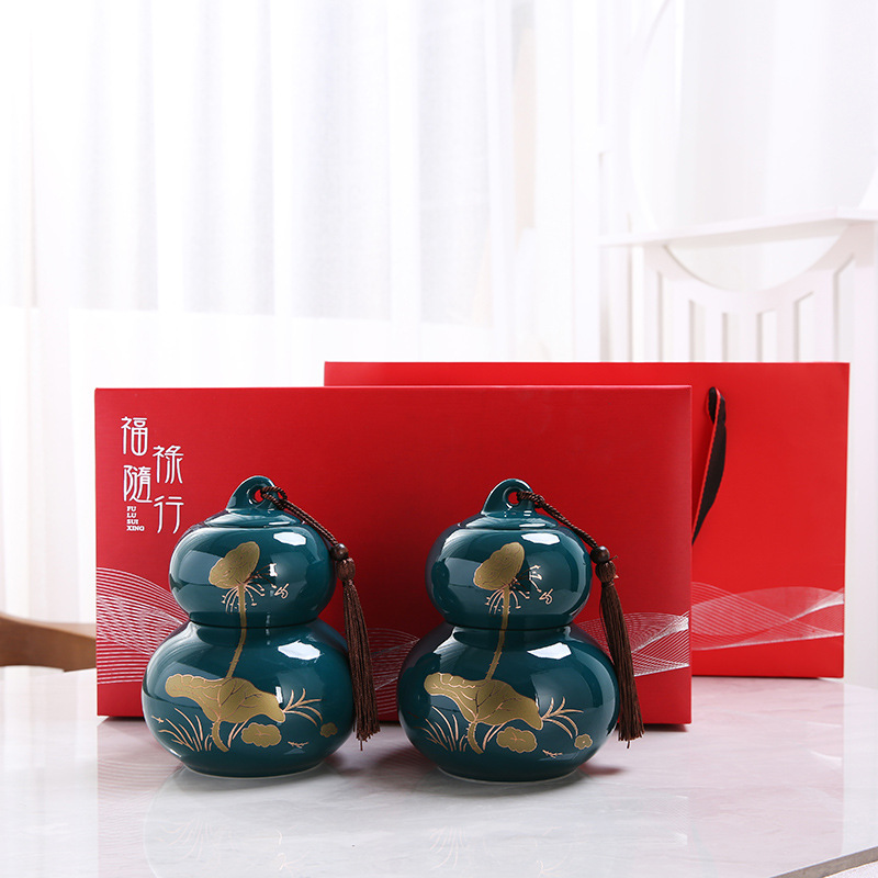 • 표준 조롱박 차 캔, 진한 녹색 선물 상자 2개