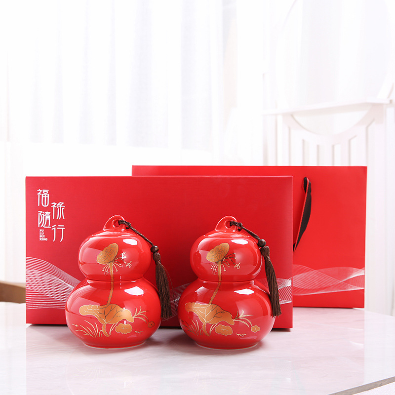 • 표준 조롱박 차 캔 밝은 빨간색 선물 상자 2개