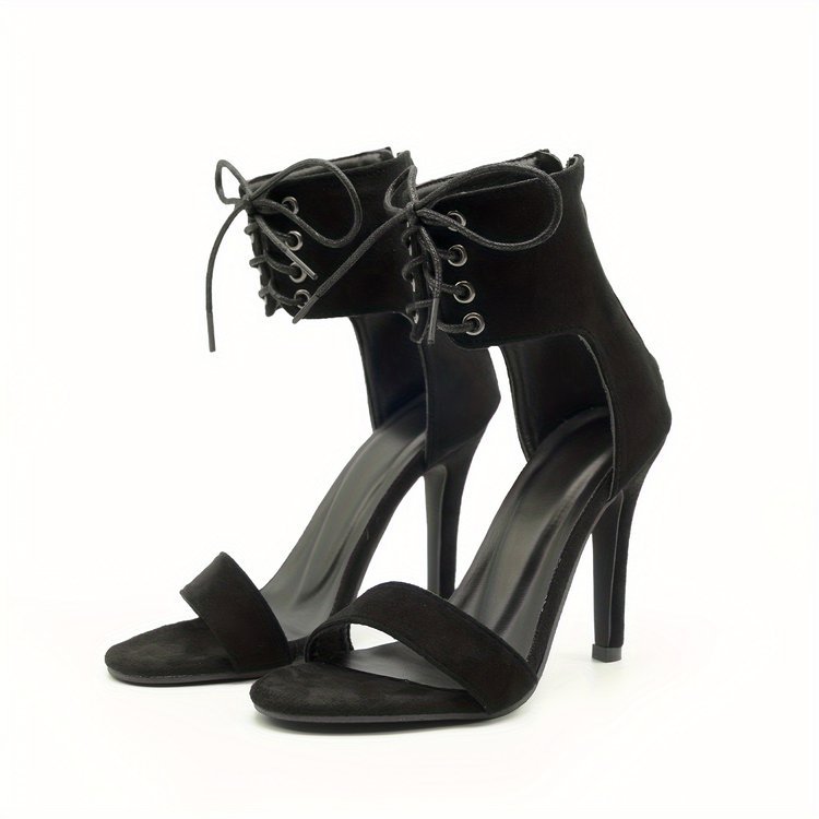 여성을 위한 원라인 발목 레이스업 2025 여름 신작 대외 무역 대형 스틸레토 블랙 쿨 슈퍼 하이힐 샌들