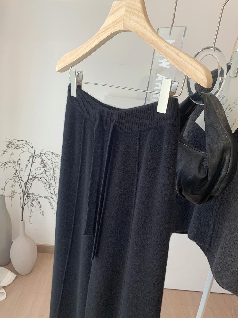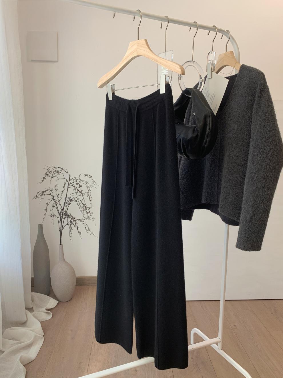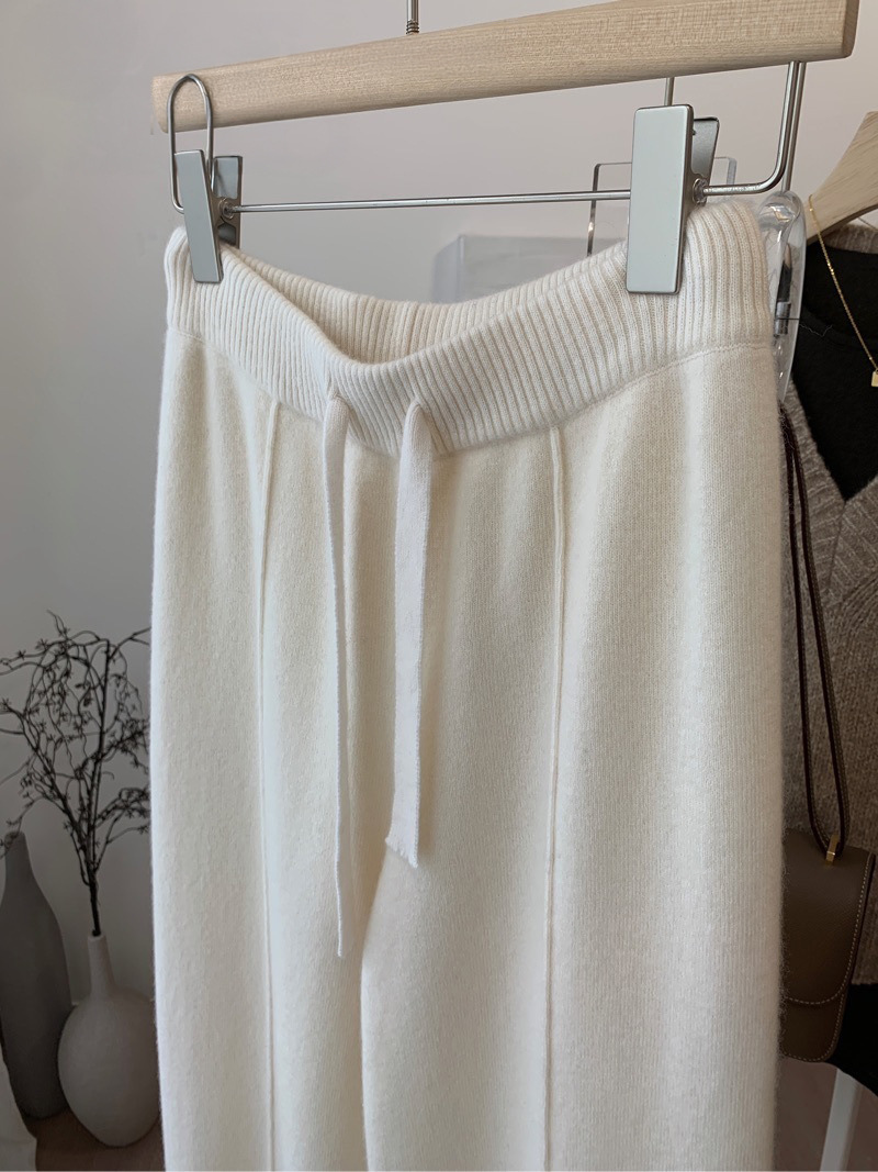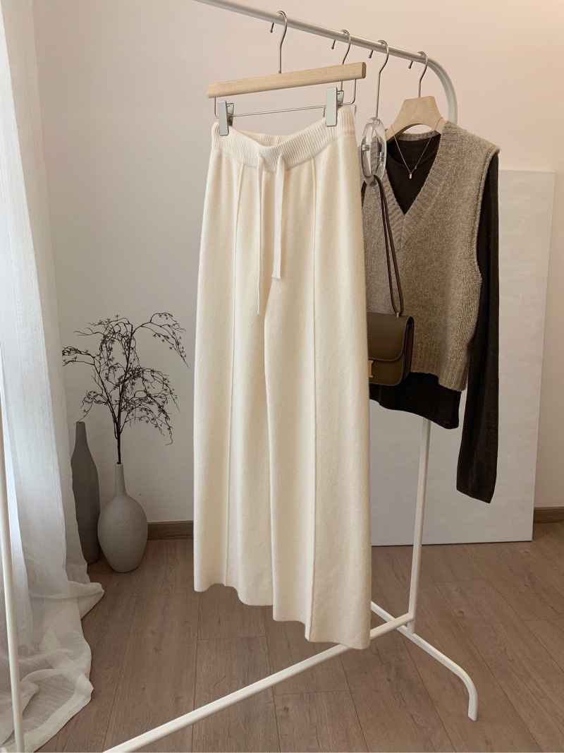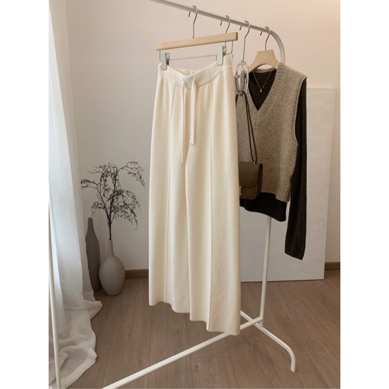 두꺼운 칙칙한 니트 넓은 다리 바지 여성용 2024 년 겨울 새로운 캐주얼 슬리밍 스트레이트 튜브 트렌디 모직 바지스토어 가기