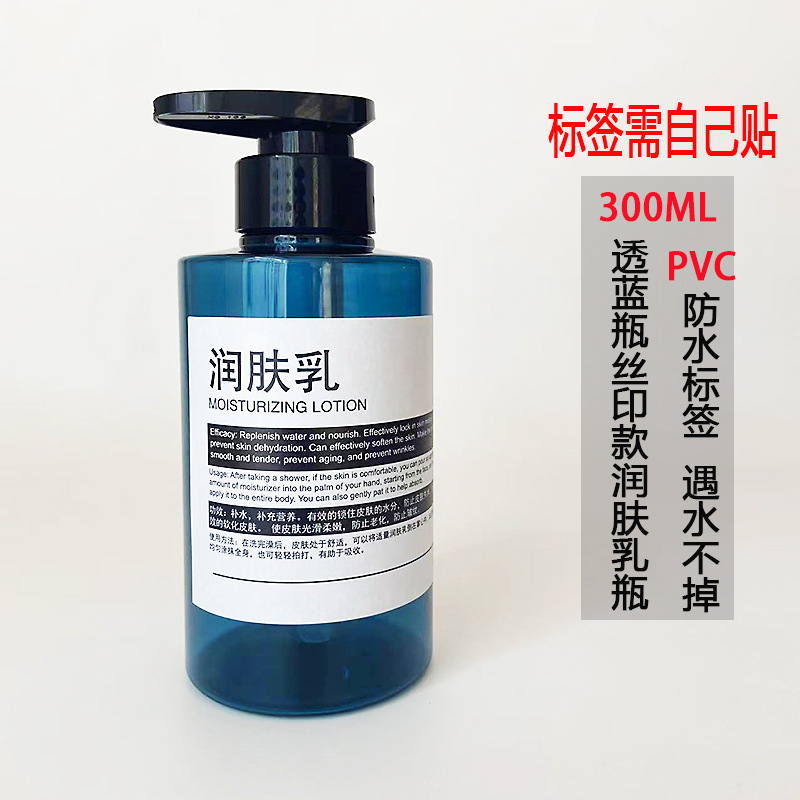 • B형 보습 로션 라벨이 있는 300ML 투명 파란색 병