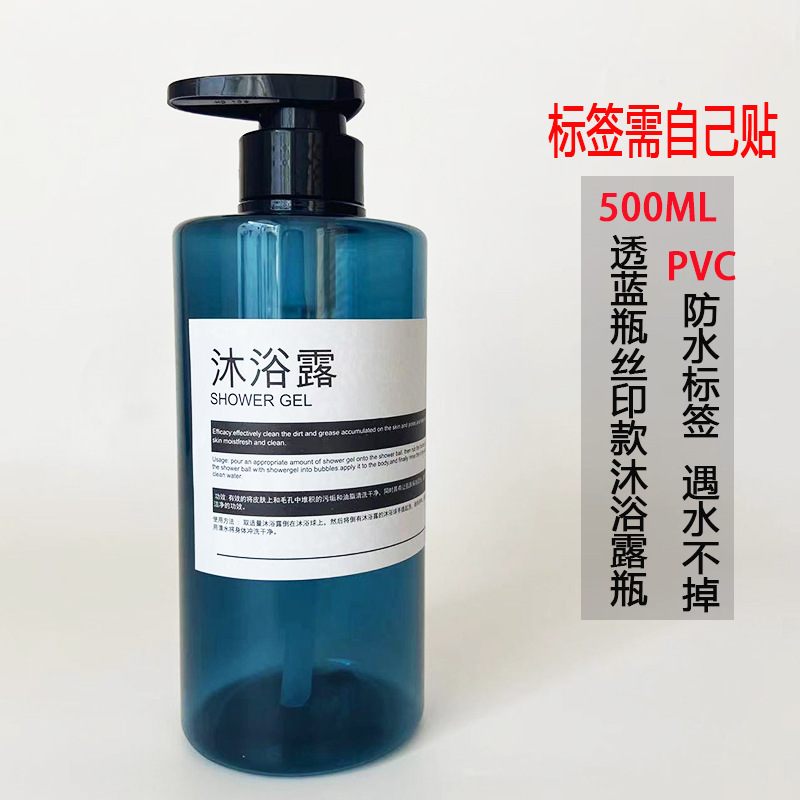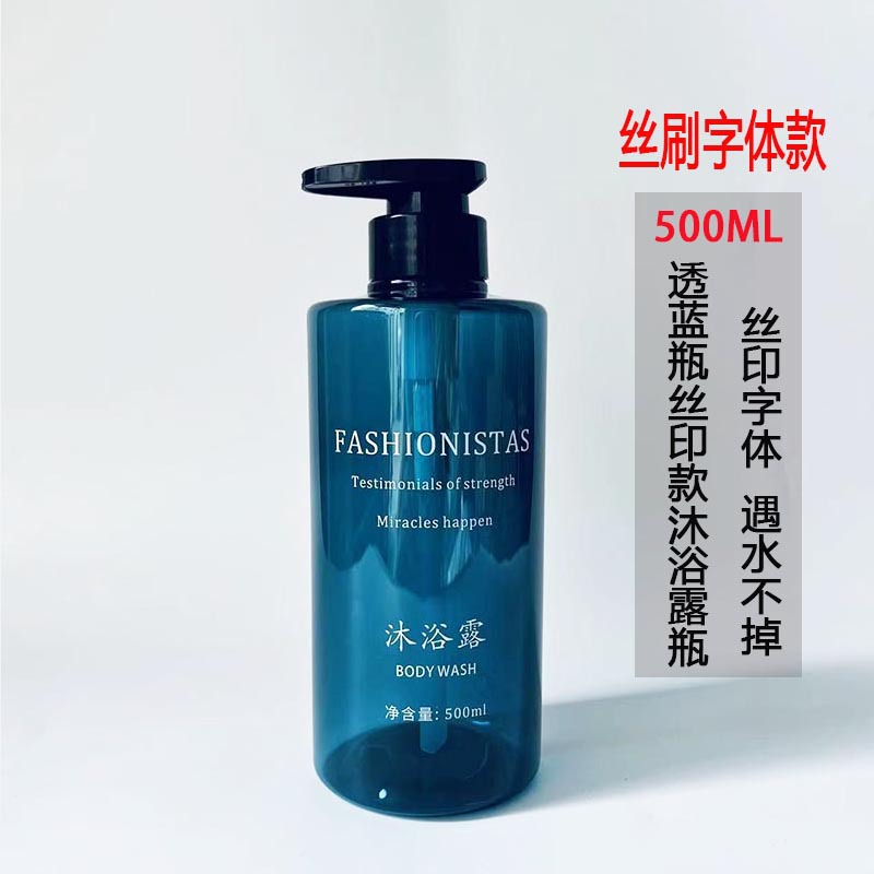 • 500ML 투명 파란색 인쇄 샤워 젤 글꼴