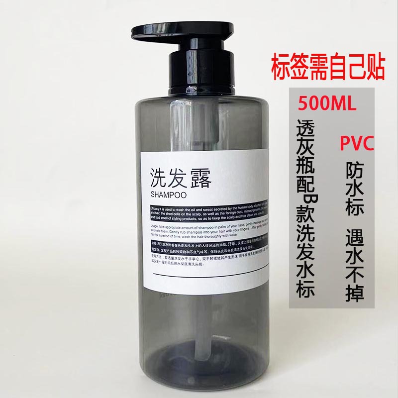 • B 스타일 샴푸 라벨이 있는 500ML 투명 회색