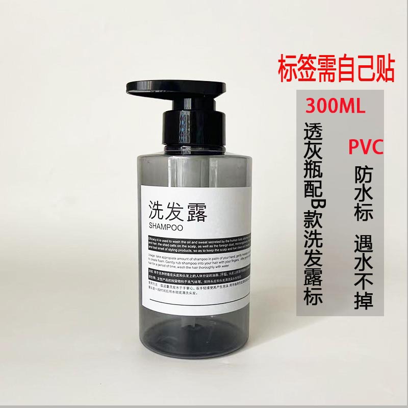 • B 스타일 샴푸 라벨이 있는 300ML 투명 회색