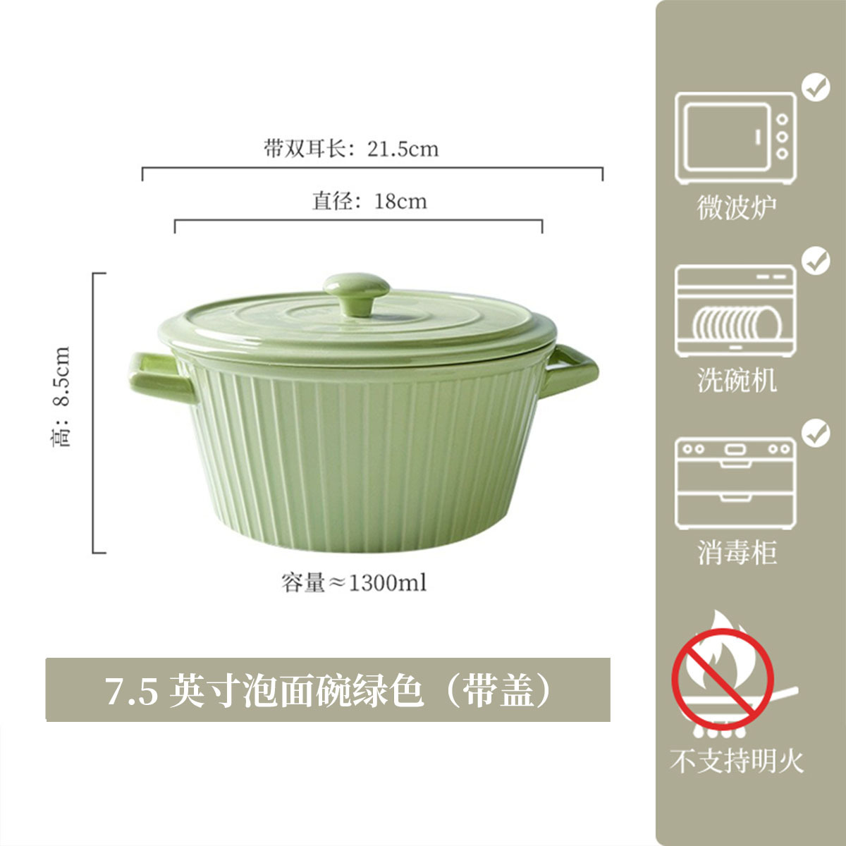 • 7.5inch 라면그릇 그린 1300ML (뚜껑포함)
