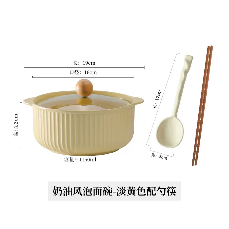 • 6inch 라면 그릇 - 연한 노란색 숟가락과 젓가락