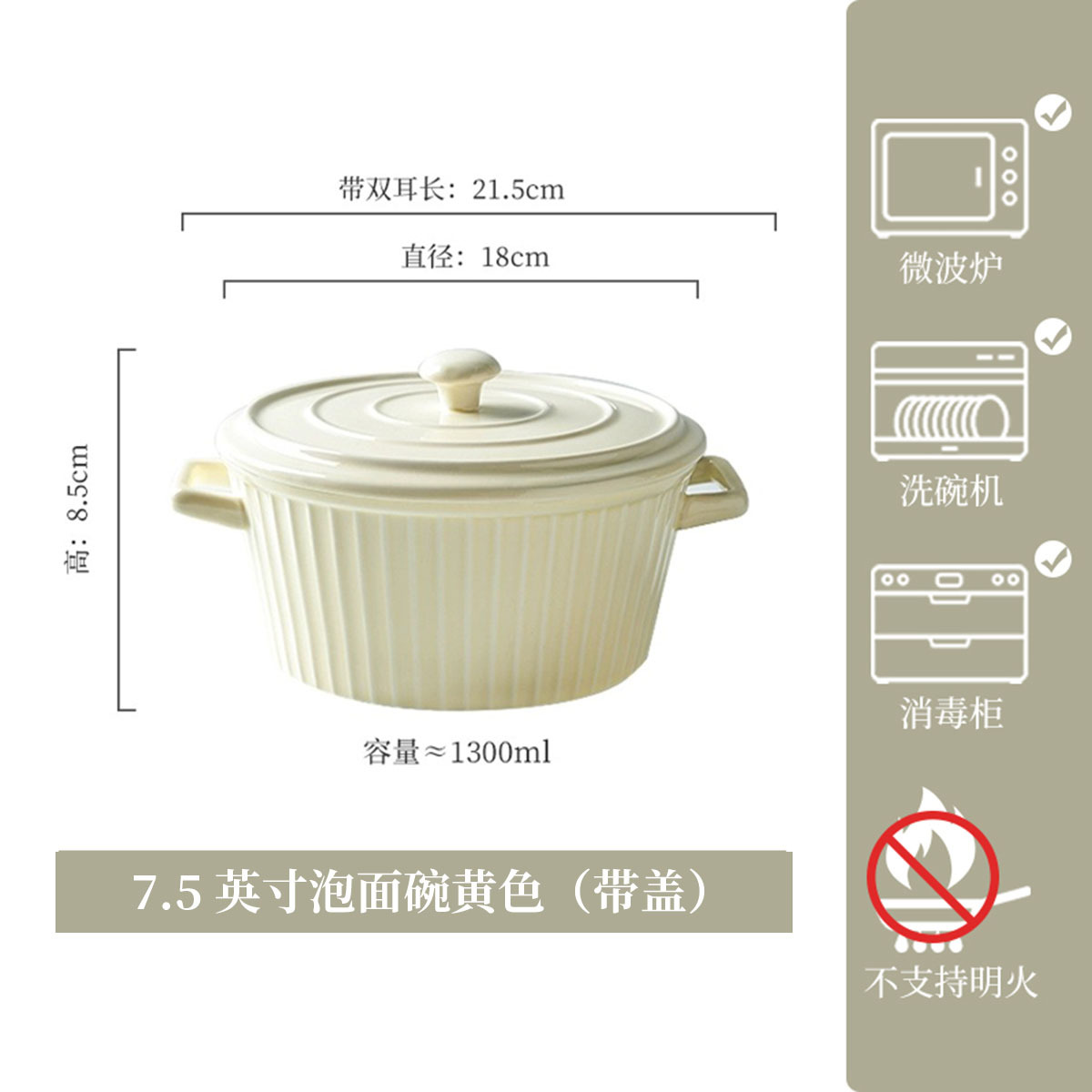 • 7.5inch 라면그릇 옐로우 1300ML (뚜껑포함)