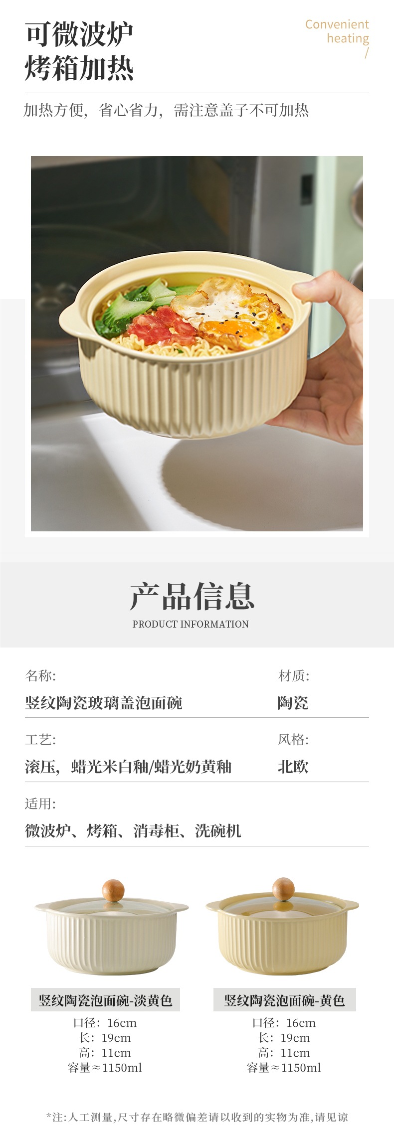 • 6inch 라면그릇 - 연한 노란색 젓가락 [1150ML에는 반죽 2개를 담을 수 있음]