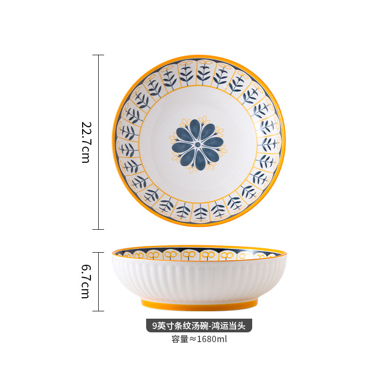 • 다채로운 9inch 줄무늬 수프 그릇 행운의 머리