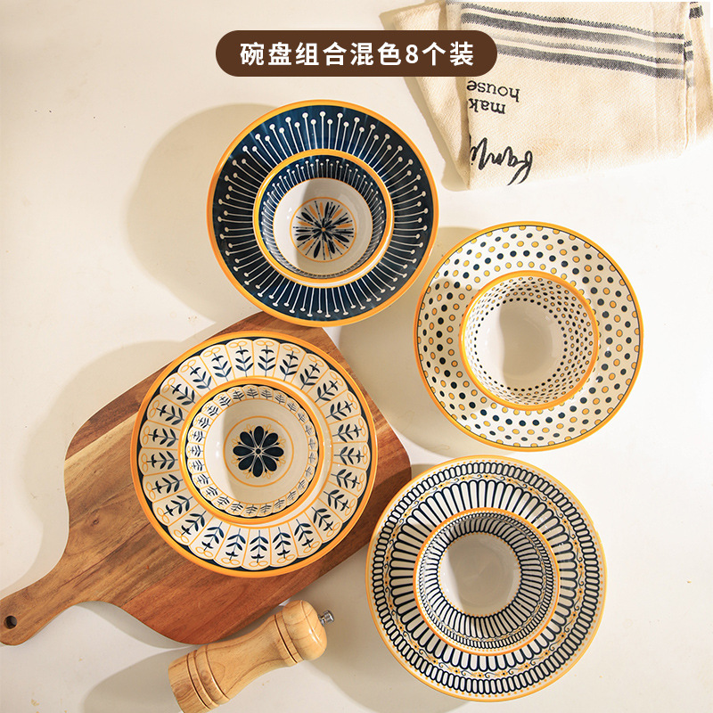 • 다채로운 그릇 4개와 접시 4개 혼합 색상 팩