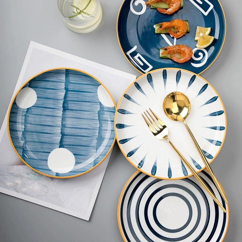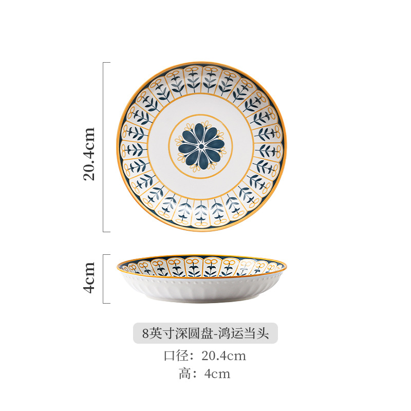 일본 스타일 딥 플레이트 세라믹 플레이트 접시 가정 요리 식기 감각 가벼운 럭셔리 2024 새로운 인터넷 연예인 볶음 요리