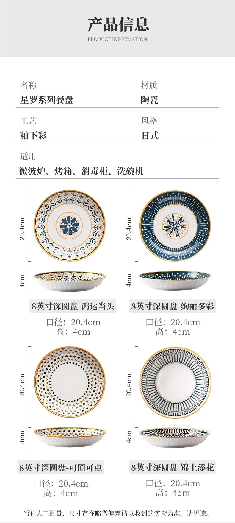 일본 스타일 딥 플레이트 세라믹 플레이트 접시 가정 요리 식기 감각 가벼운 럭셔리 2024 새로운 인터넷 연예인 볶음 요리스토어 가기