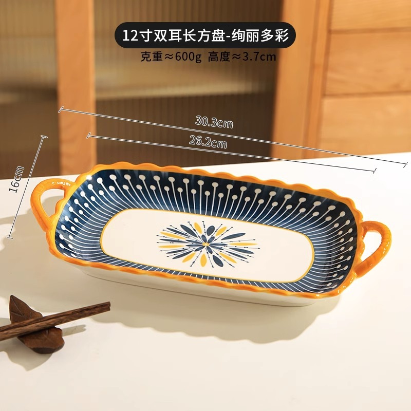 • 컬러풀 12inch 이중 귀 직사각형 플레이트 - 컬러풀