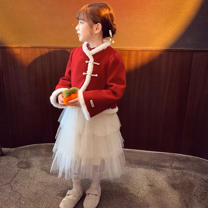 어린이 Xingyuan 소녀 한푸 중국 스타일 코트 겨울 2024 겨울 새로운 서양식 어린이 신년 옷 신년 옷