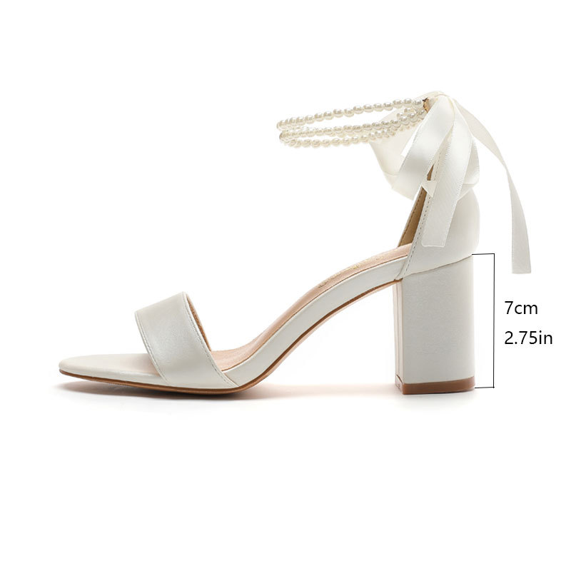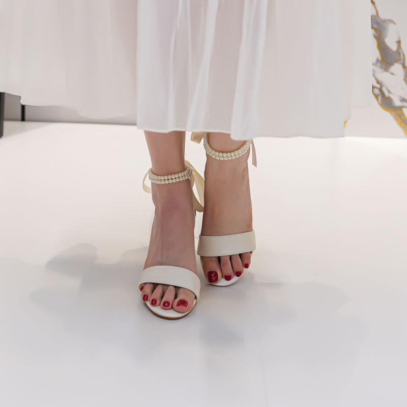 플러스 사이즈 하이힐 샌들 여성 오픈 발가락 섹시 화이트 리본 활 구슬 진주 여성 신발 클래식 패션 웨딩 슈즈스토어 가기