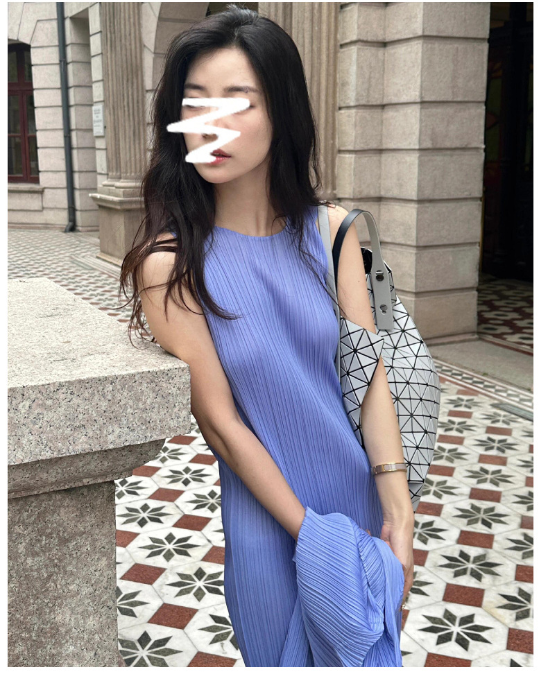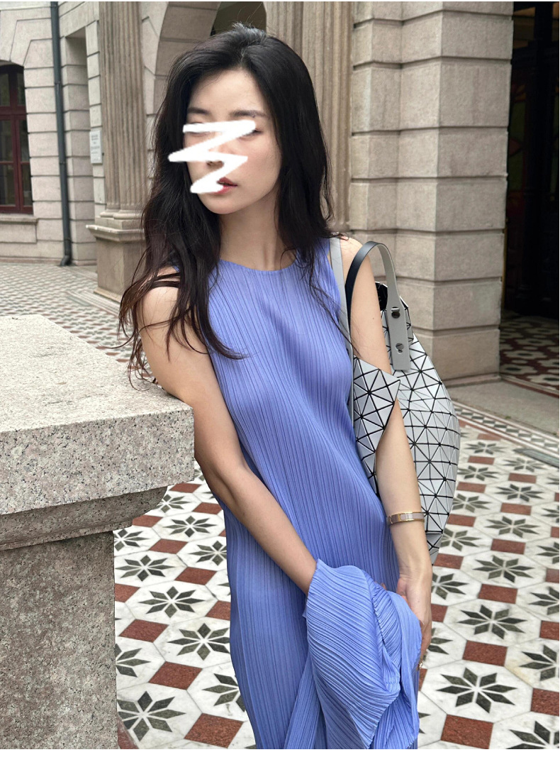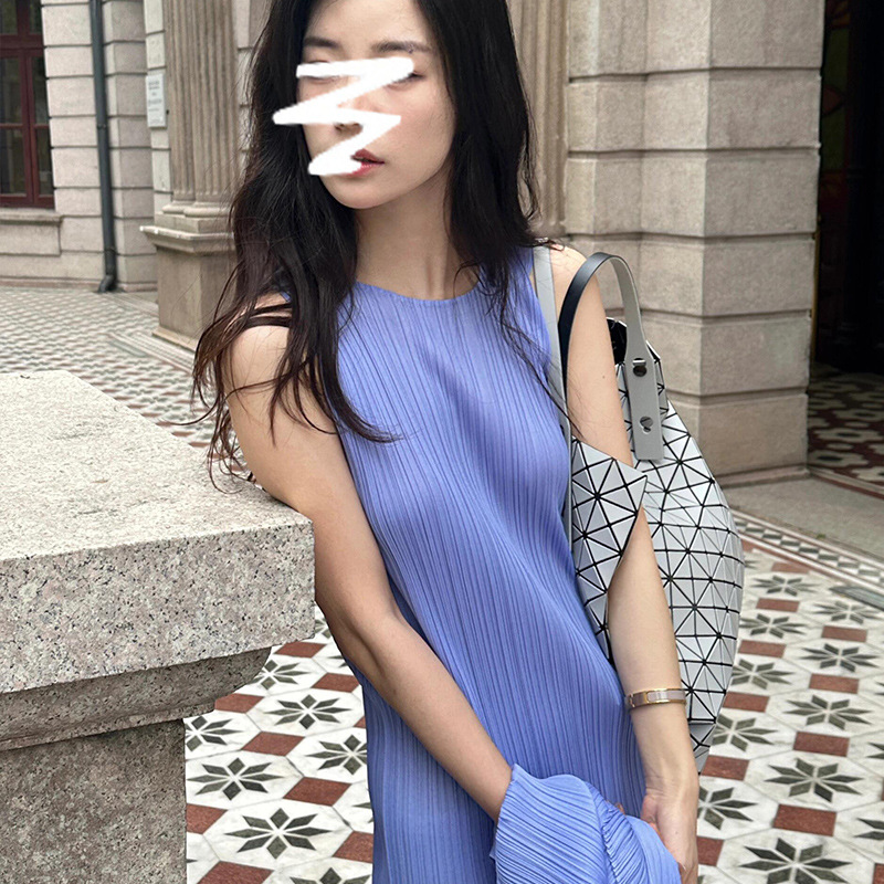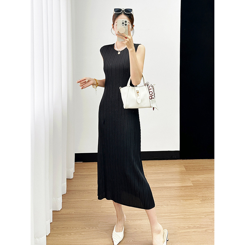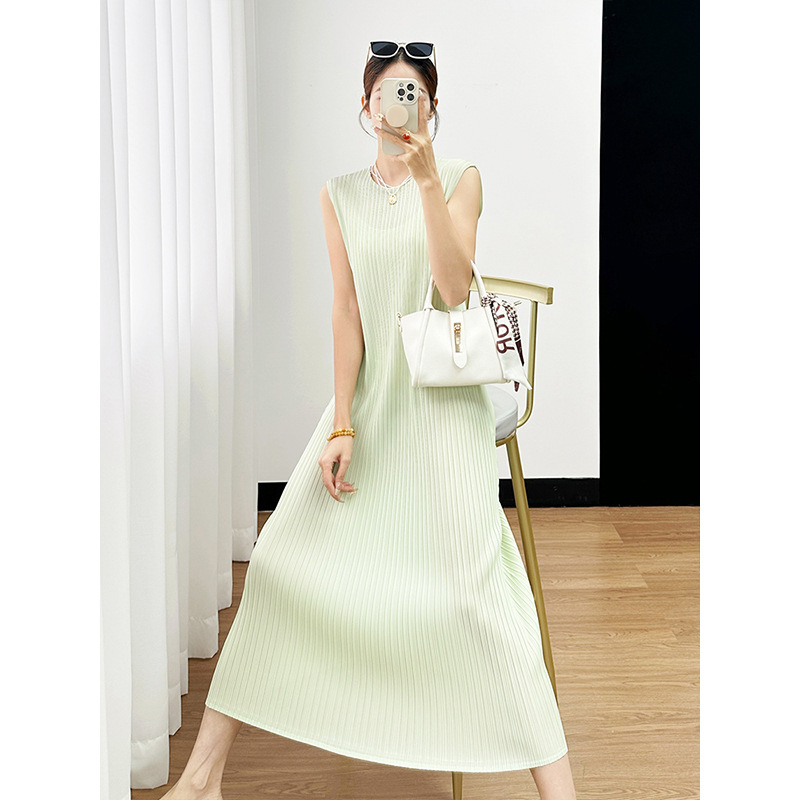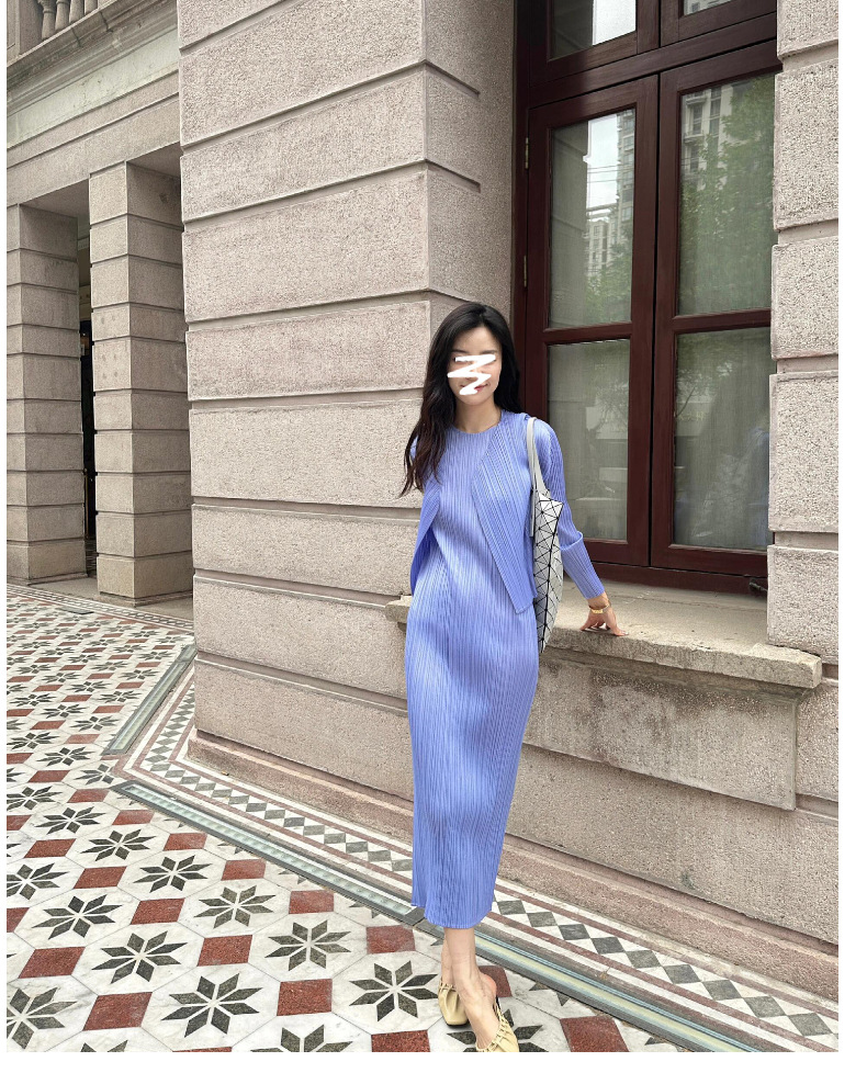 Miyake 2024 가을 새로운 패션 세트 여성 라운드 넥 민소매 중간 길이 원피스 올 매치 카디건 재킷스토어 가기