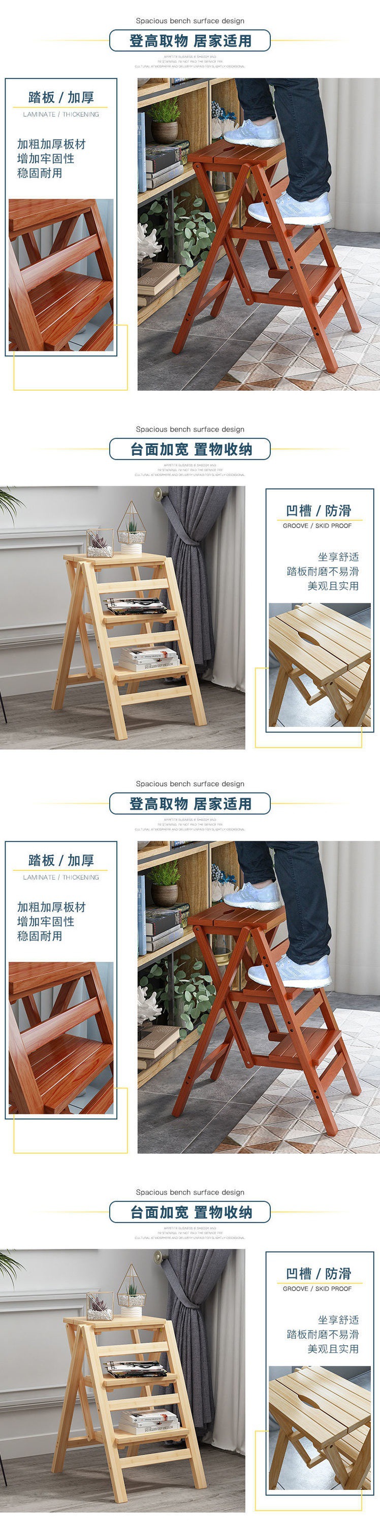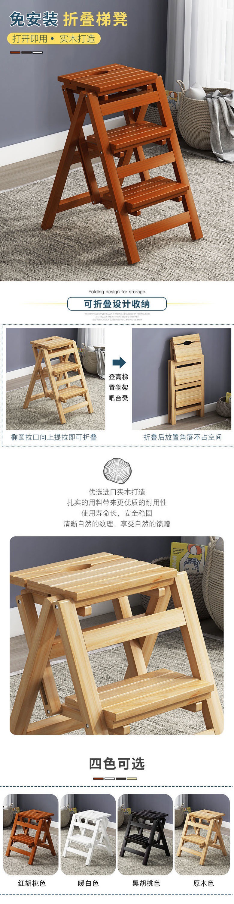 사다리 의자 가정용 단단한 나무 설치-자유로운 사다리 의자 접히는 단계 발 4 단계 등반 사다리 다기능 이중 사용 진쑤언스토어 가기