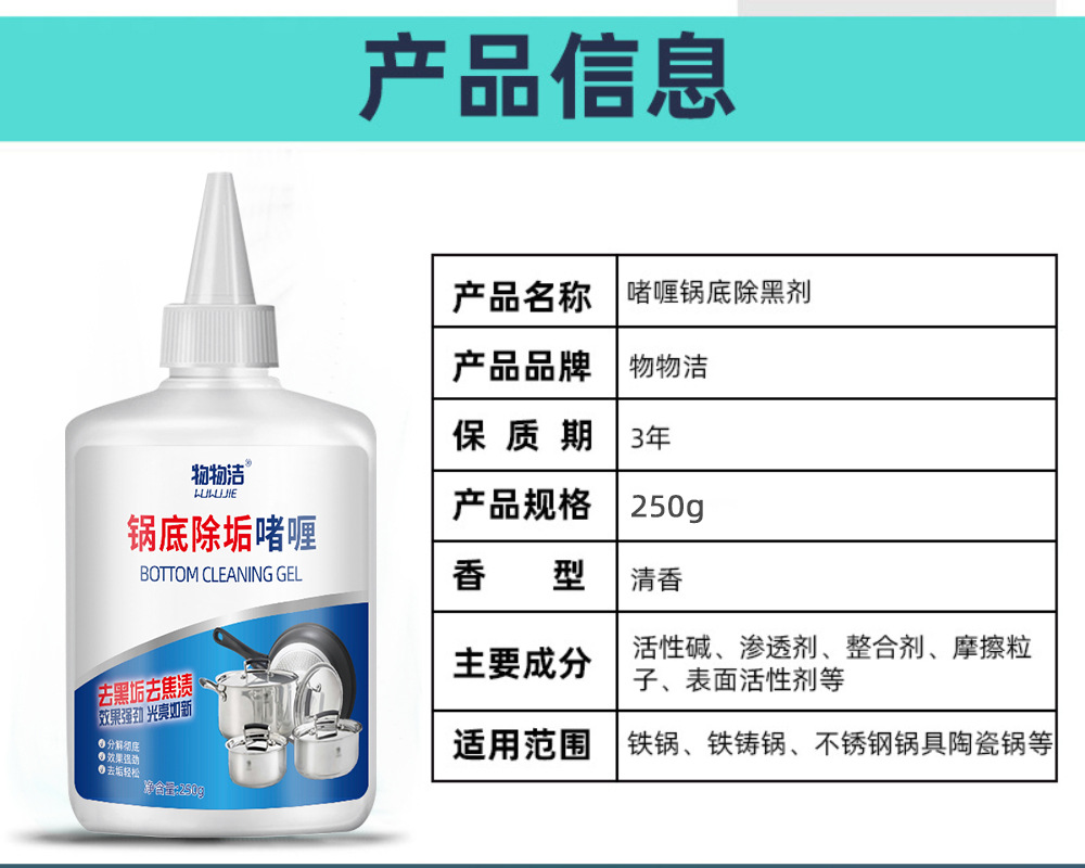 냄비 바닥 descaling 젤 250g 검은 냄비 바닥 청소 에이전트 오일 먼지 스테인레스 스틸 청소 철 냄비 완고한 검은 먼지