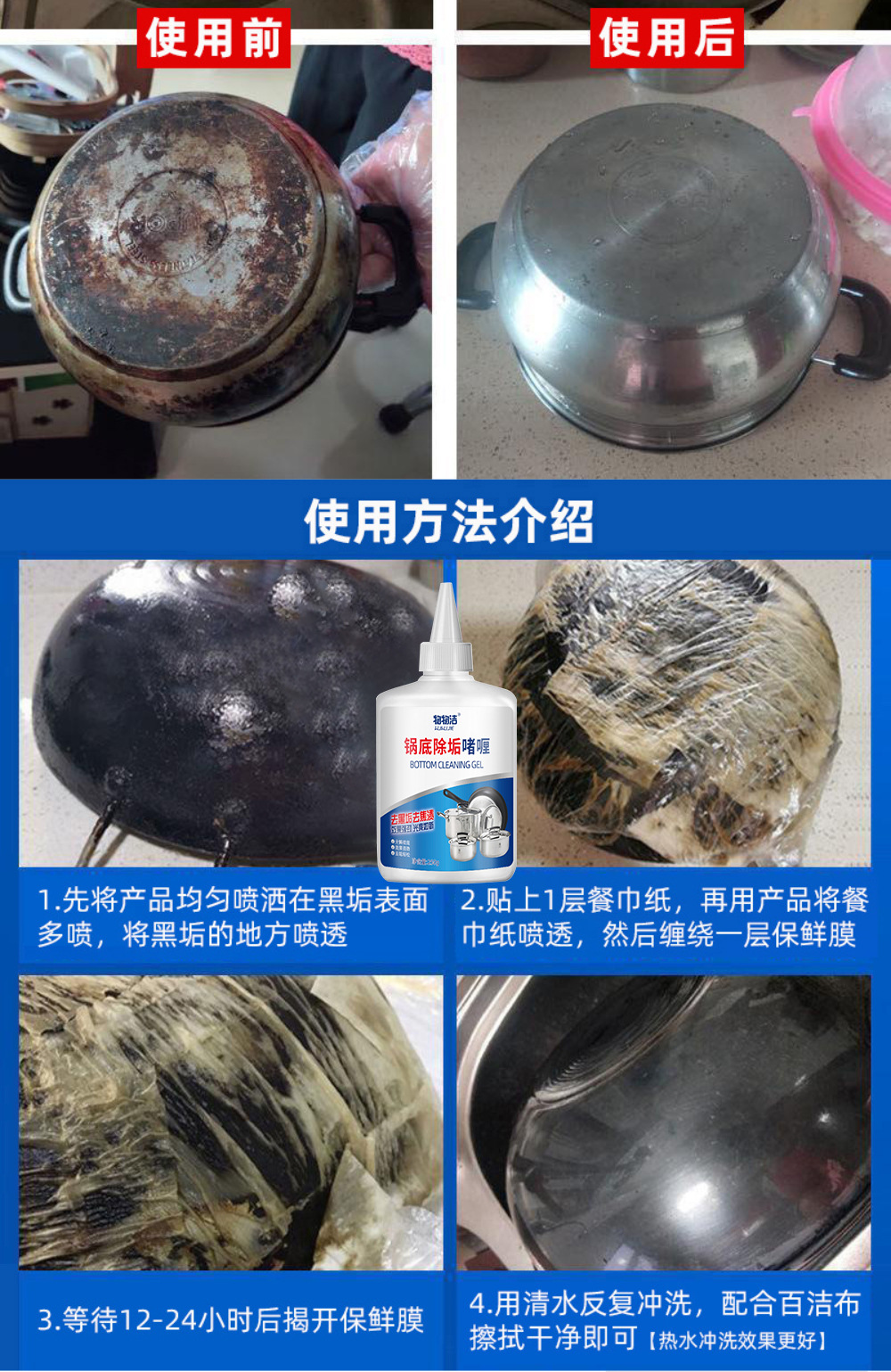 냄비 바닥 descaling 젤 250g 검은 냄비 바닥 청소 에이전트 오일 먼지 스테인레스 스틸 청소 철 냄비 완고한 검은 먼지스토어 가기