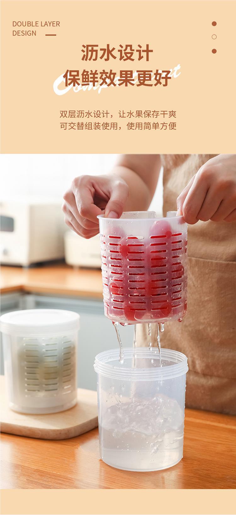 휴대용 과일 저장 상자 포크 가정용 주방 배수 신선한 보관 상자 전자 레인지 밀봉 가능한 누출 방지 Sha Qin Xuan