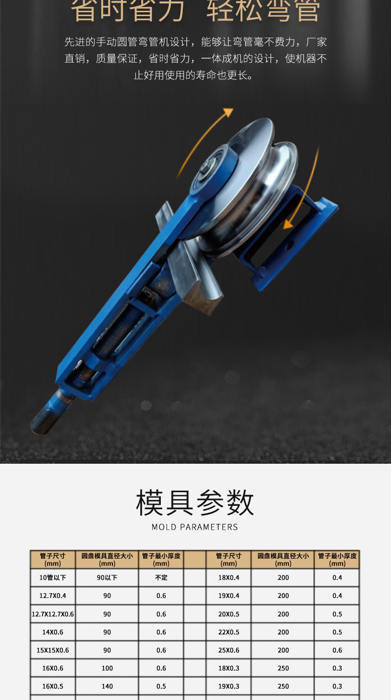 • Φ14 튜브, 다이 디스크 직경 70, 가장 얇은 굽힘 0.6