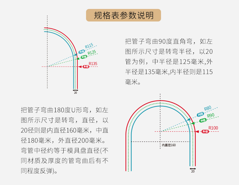 • Φ18 튜브, 다이 디스크 직경 160, 가장 얇은 굽힘 0.5