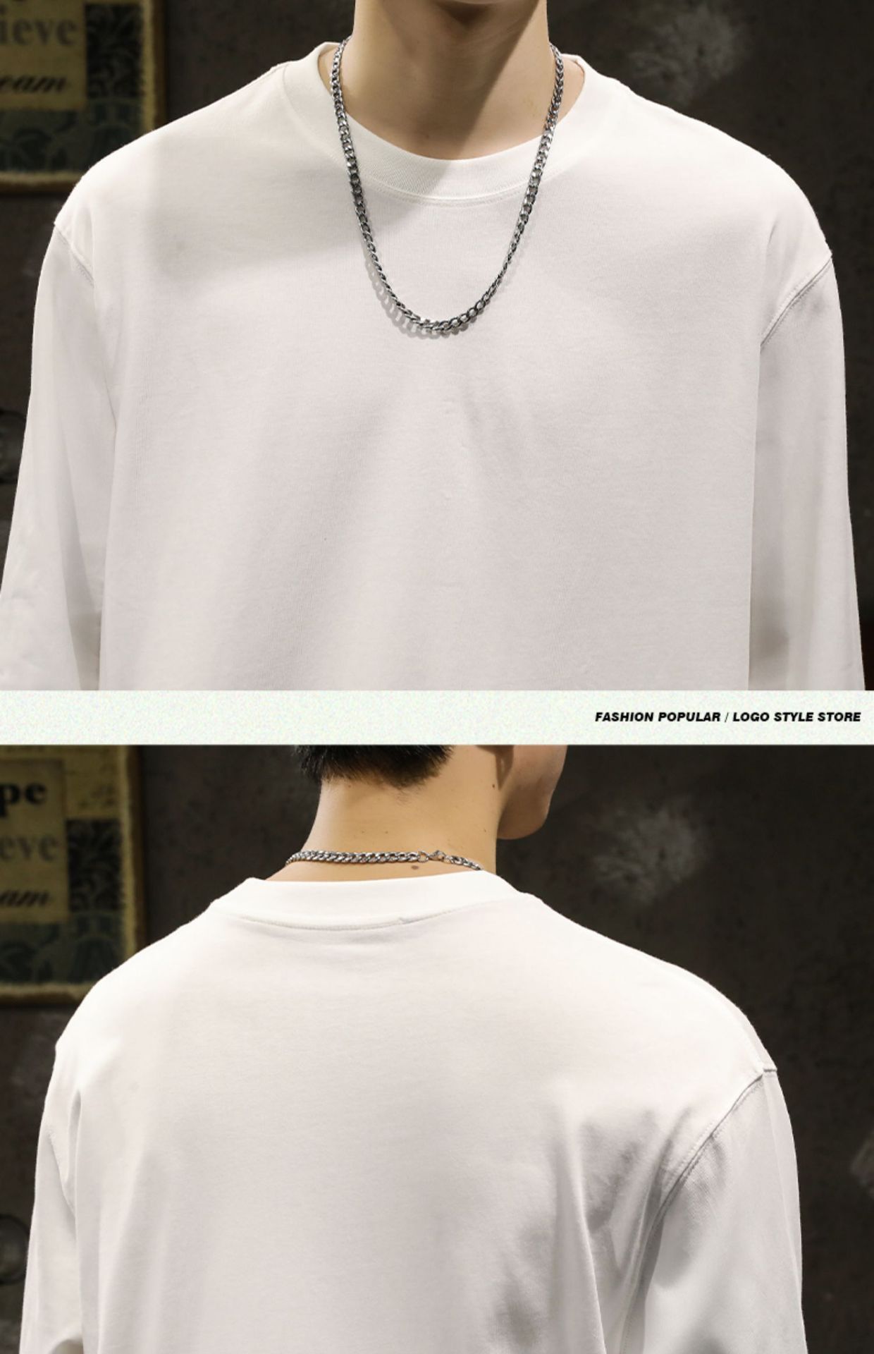 무거운 300g 면 흑백 긴 소매 티셔츠 남성베이스 셔츠 봄과 가을 내부 코트 둥근 목 느슨한 조커스토어 가기