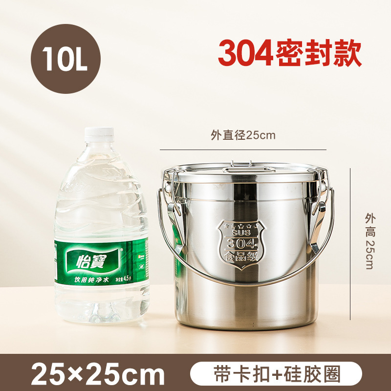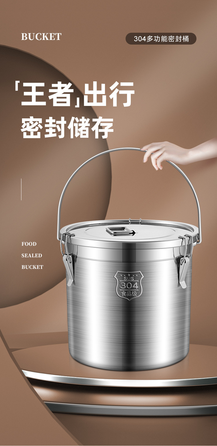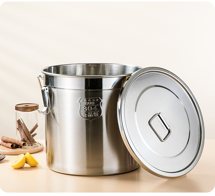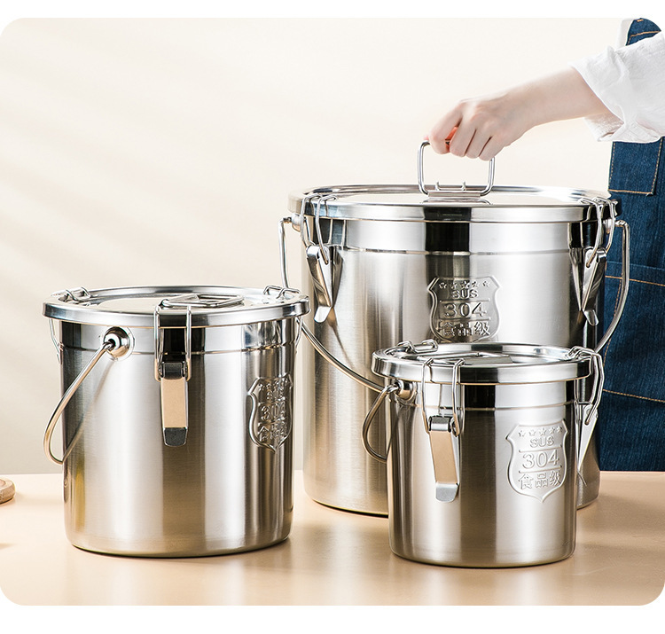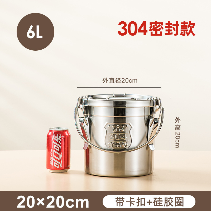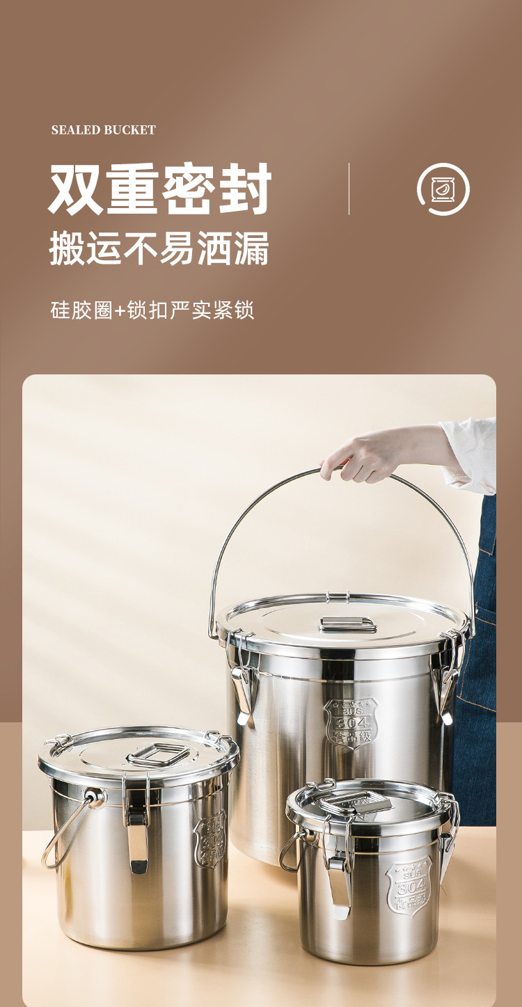 304 스테인레스 스틸 버킷 밀봉 버킷 뚜껑 휴대용 버킷 수프 버킷 쌀 오일 유치원 식사 배달 우유 양동이스토어 가기