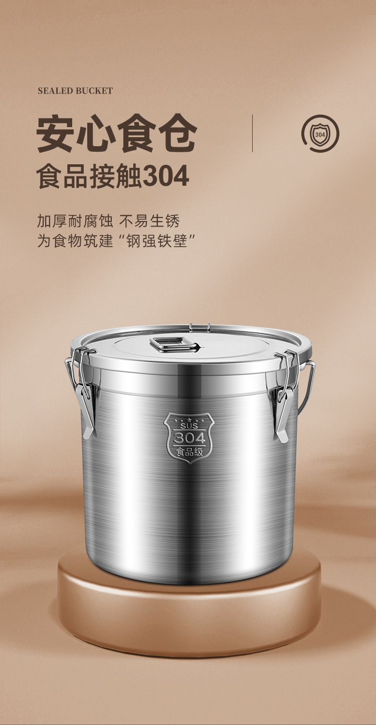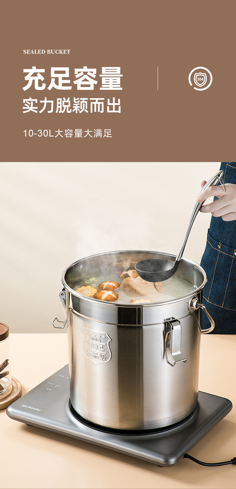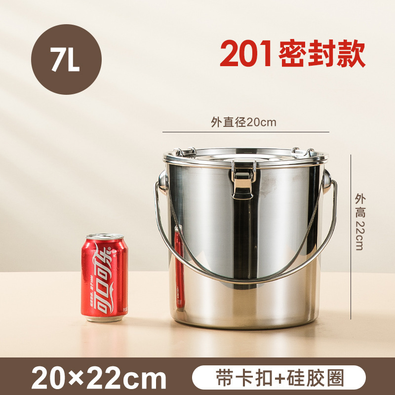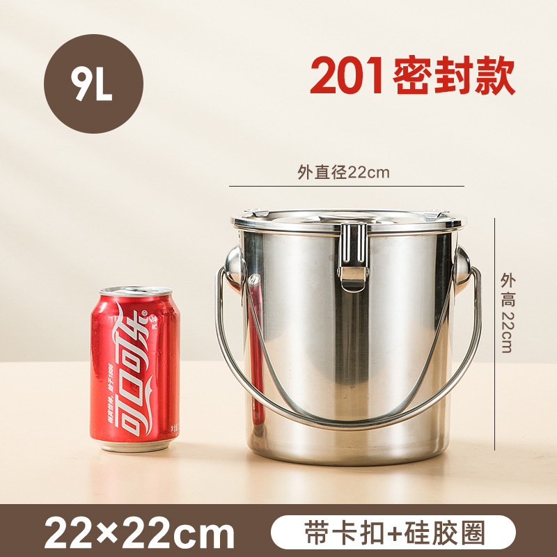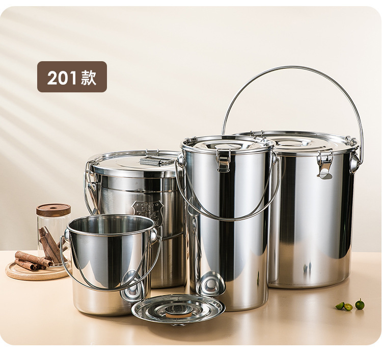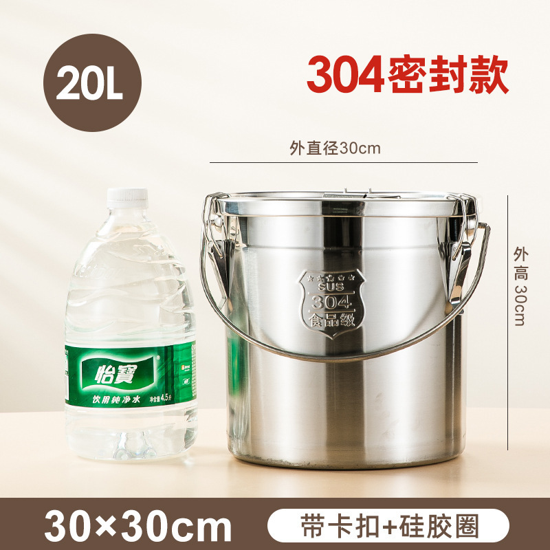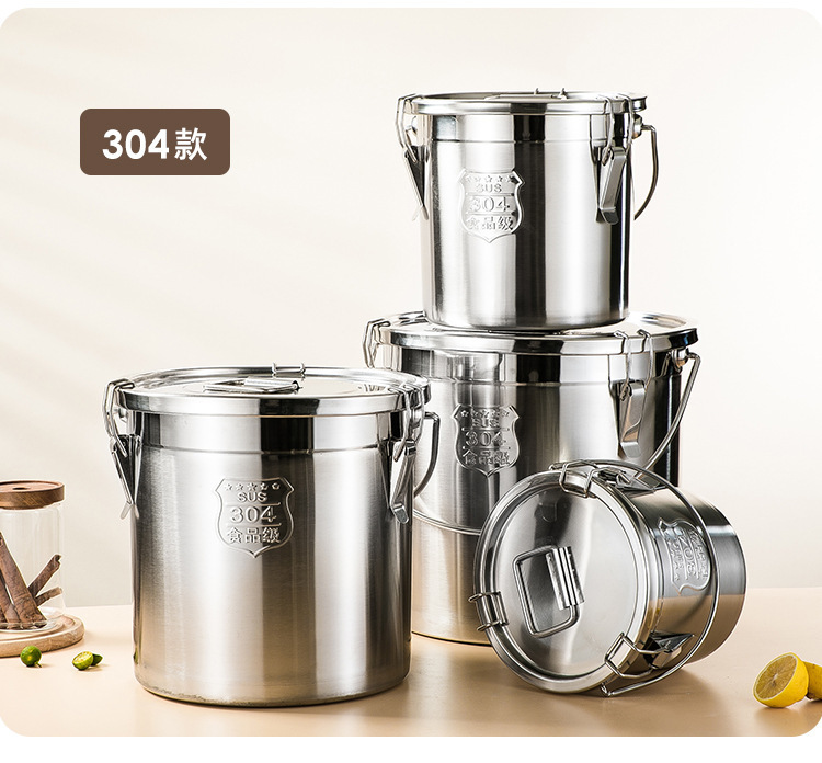304 스테인레스 스틸 버킷 밀봉 버킷 뚜껑 휴대용 버킷 수프 버킷 쌀 오일 유치원 식사 배달 우유 양동이스토어 가기