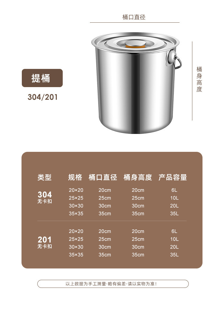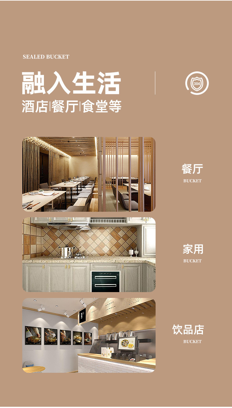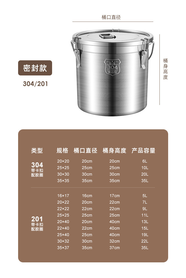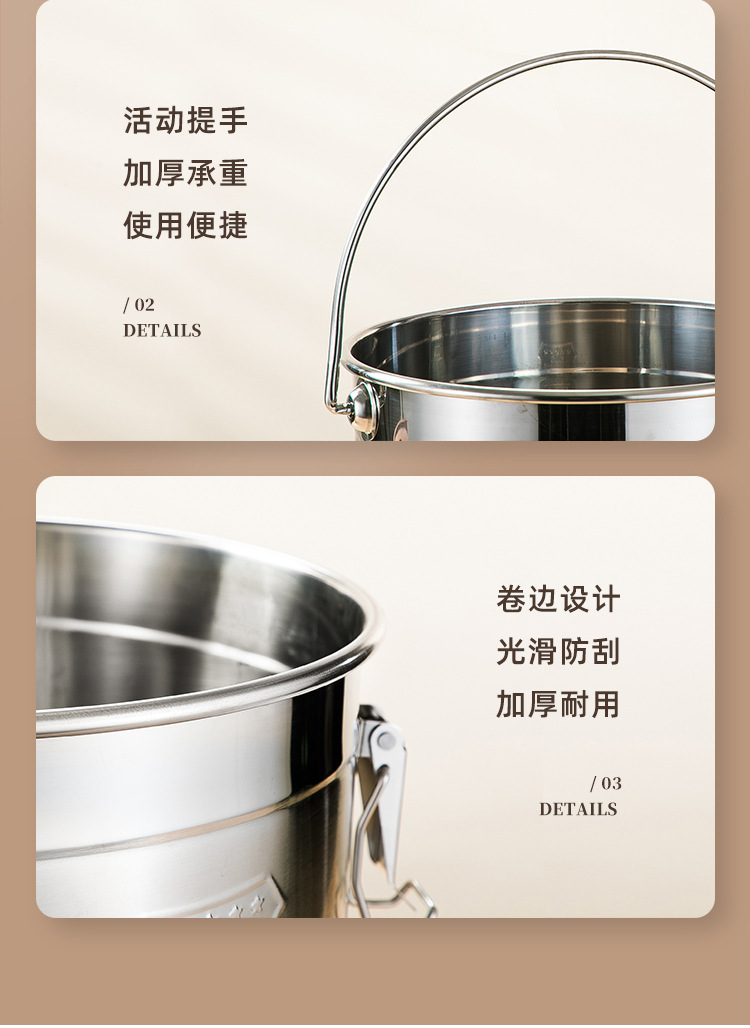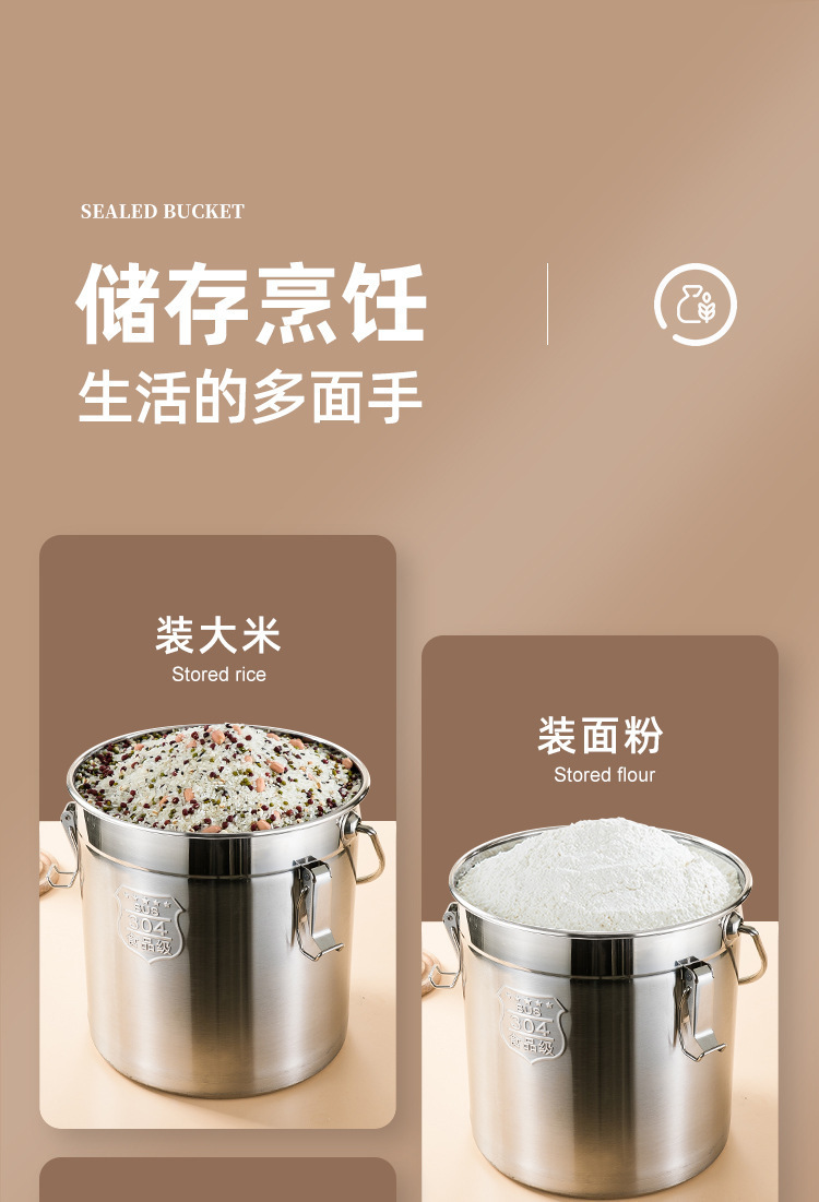 304 스테인레스 스틸 버킷 밀봉 버킷 뚜껑 휴대용 버킷 수프 버킷 쌀 오일 유치원 식사 배달 우유 양동이스토어 가기