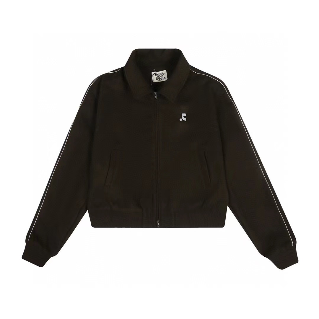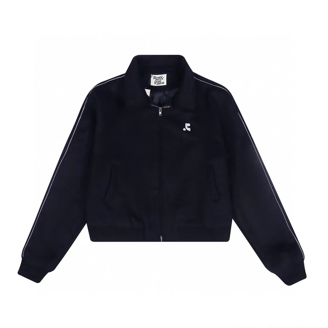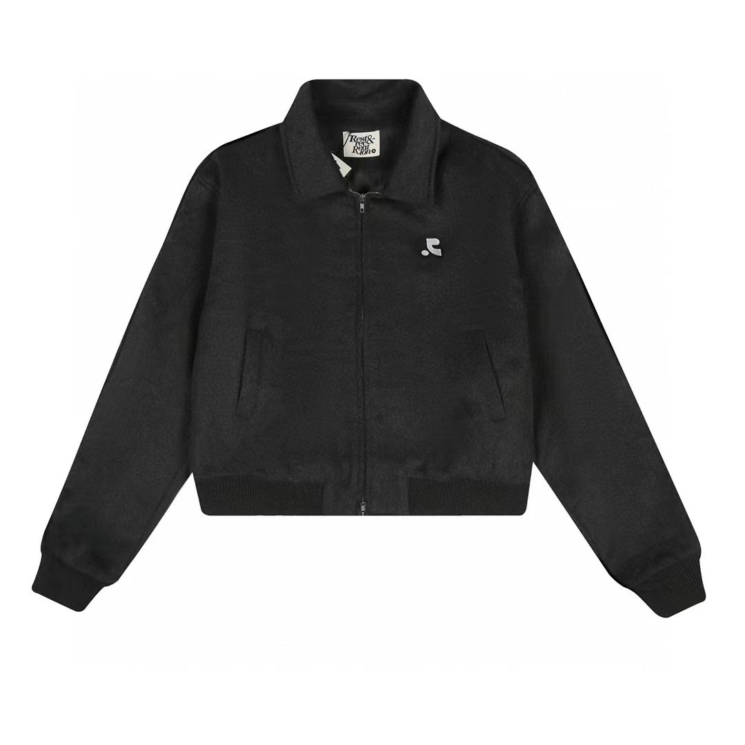 한국 레스트 RR 클로티팀 자수 RR 라펠 더블 지퍼 울 재킷 숏 코트 여성용