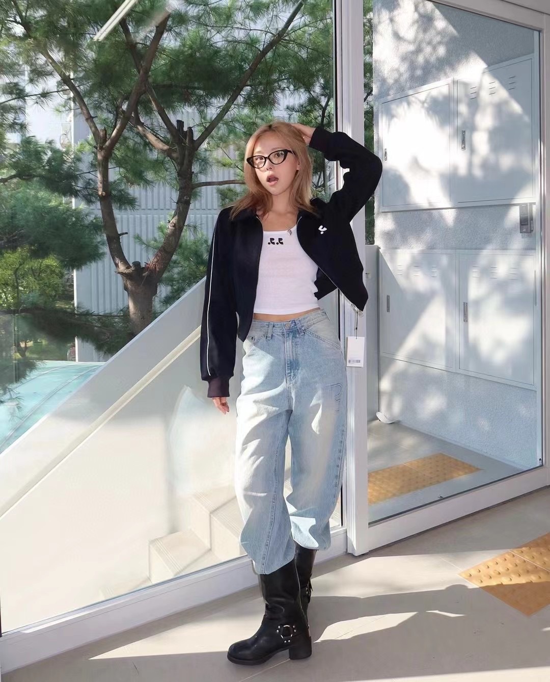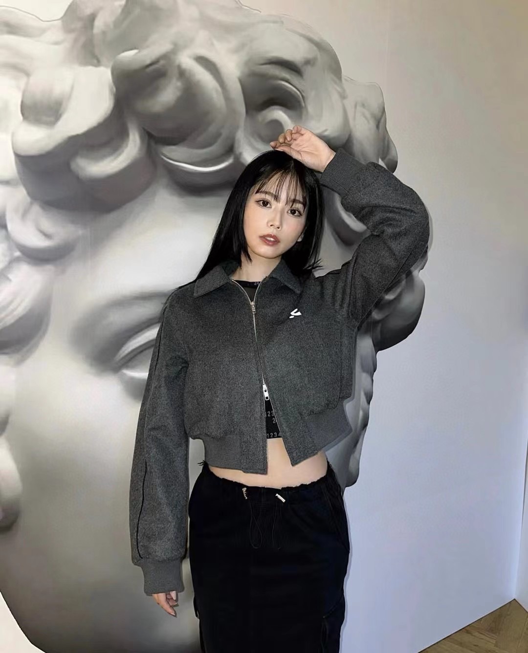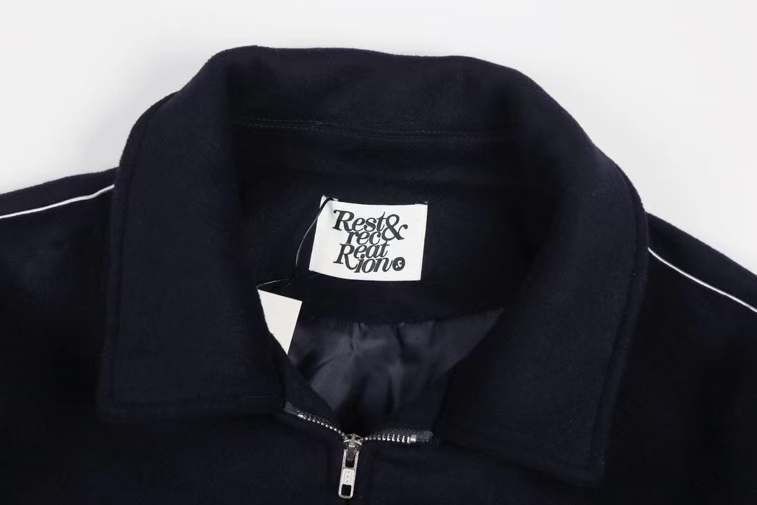 한국 레스트 RR 클로티팀 자수 RR 라펠 더블 지퍼 울 재킷 숏 코트 여성용스토어 가기