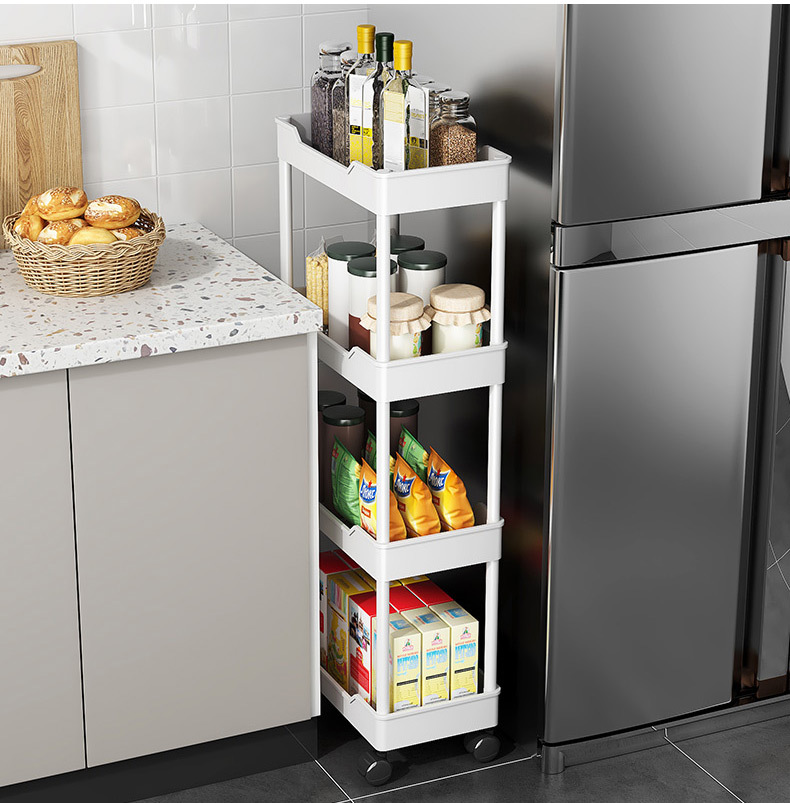 갭 스토리지 랙 바닥 다층 냉장고 갭 스토리지 랙 캐비닛 가정용 화장실 주방 이동식 Xiaoqin Xuan스토어 가기