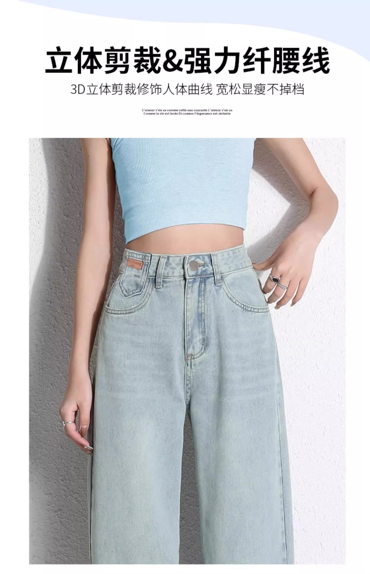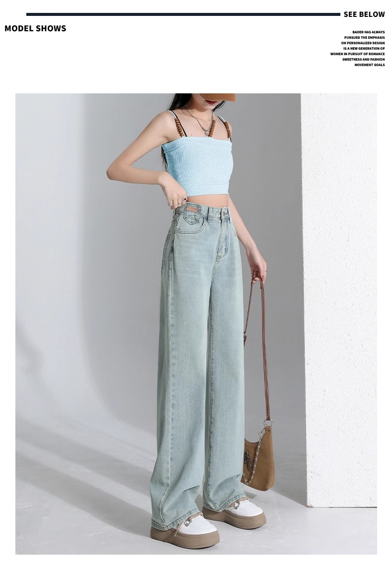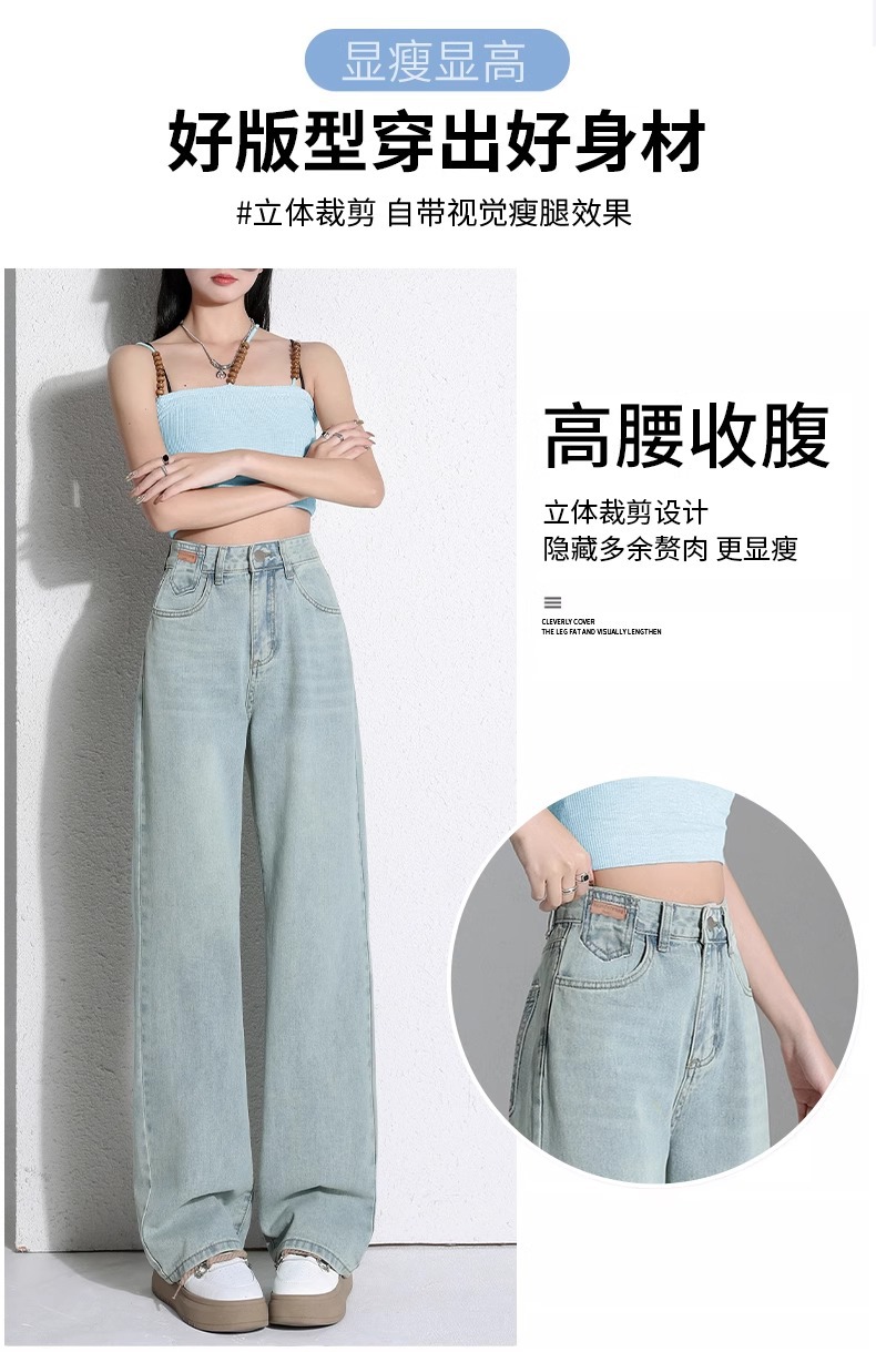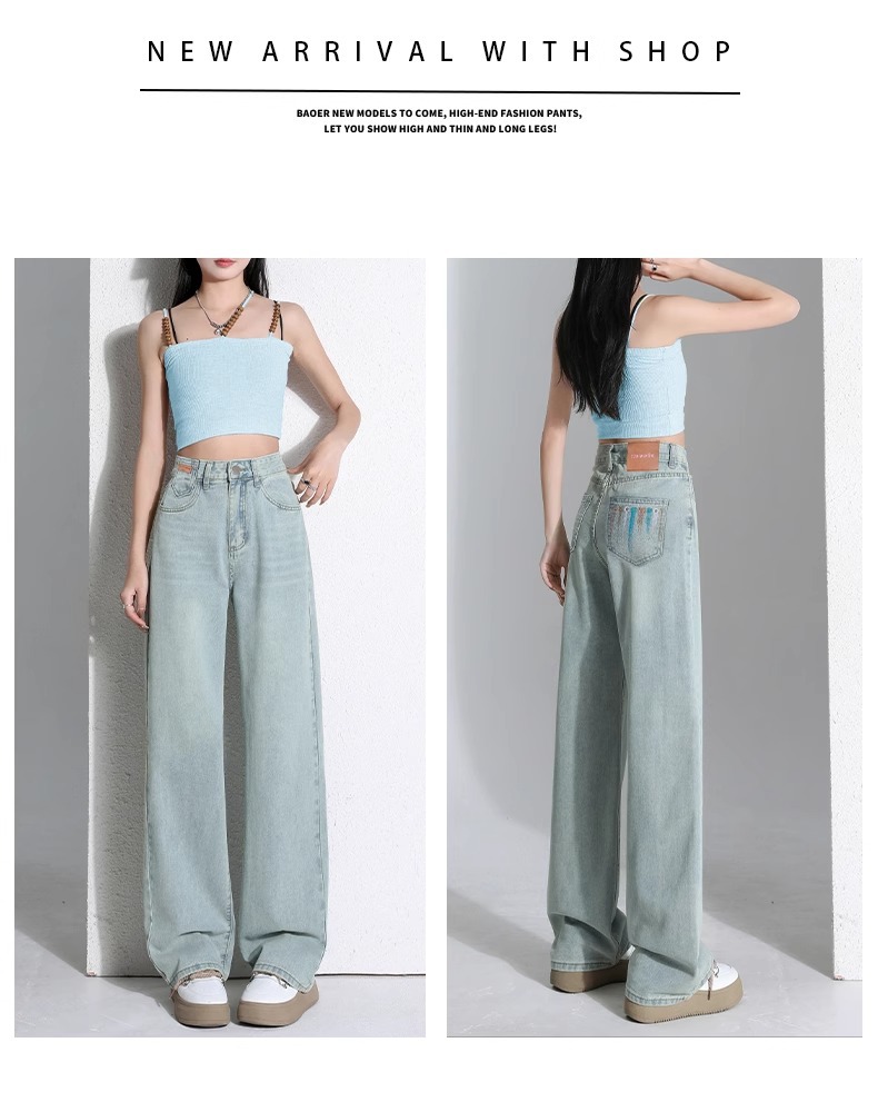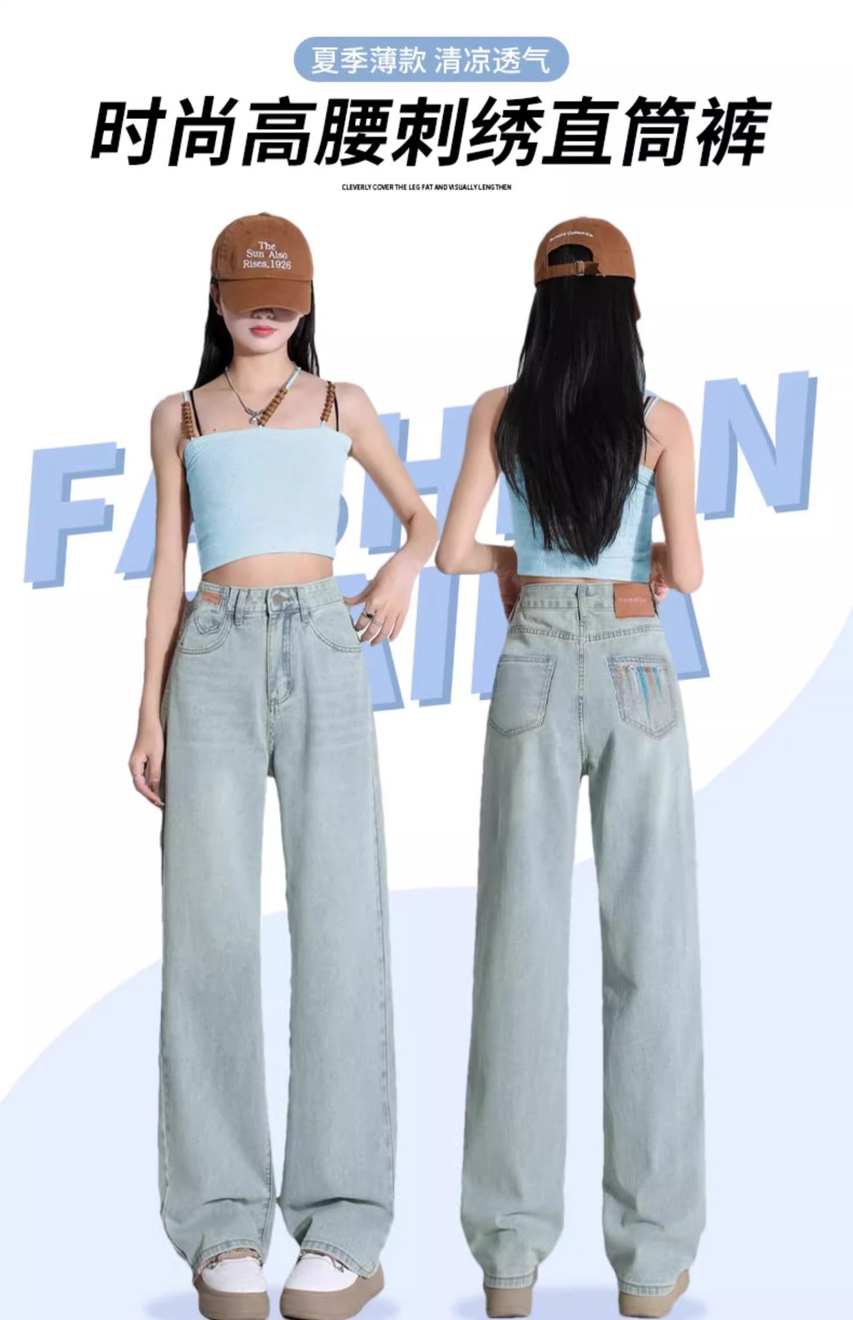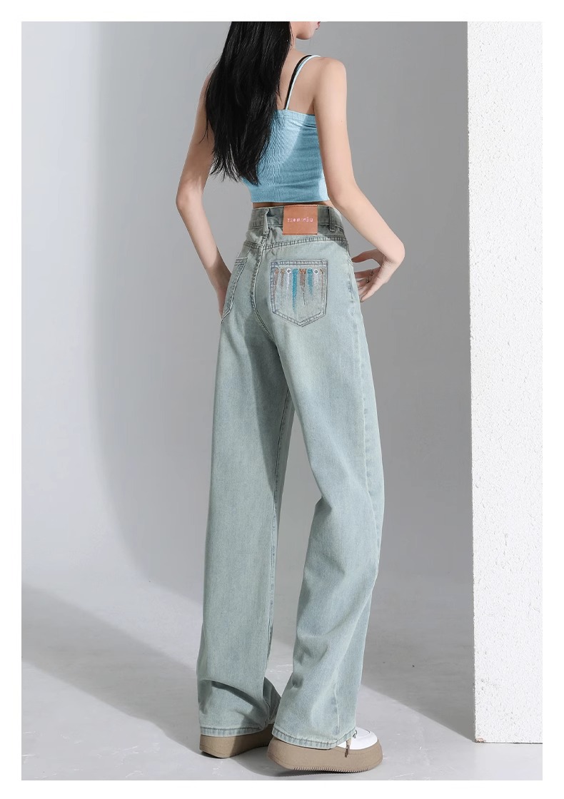 여성용 자수 스트레이트 청바지, 2025 봄 가을 신상 하이웨이스트 드레이프 라이트 컬러 디자인, 슬림핏 와이드 팬츠스토어 가기