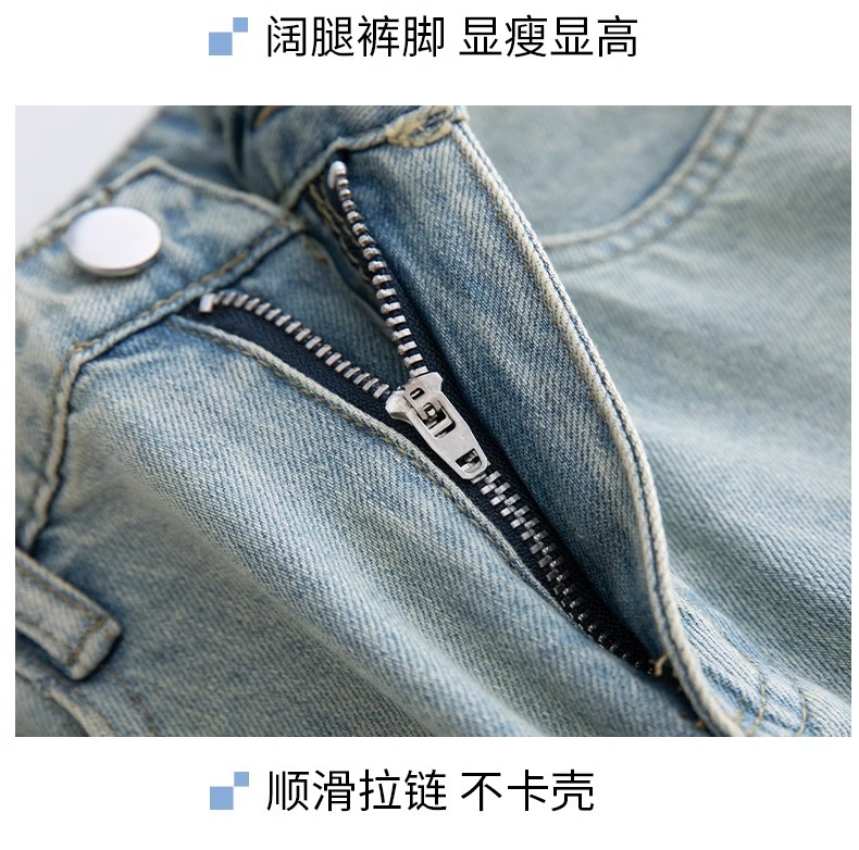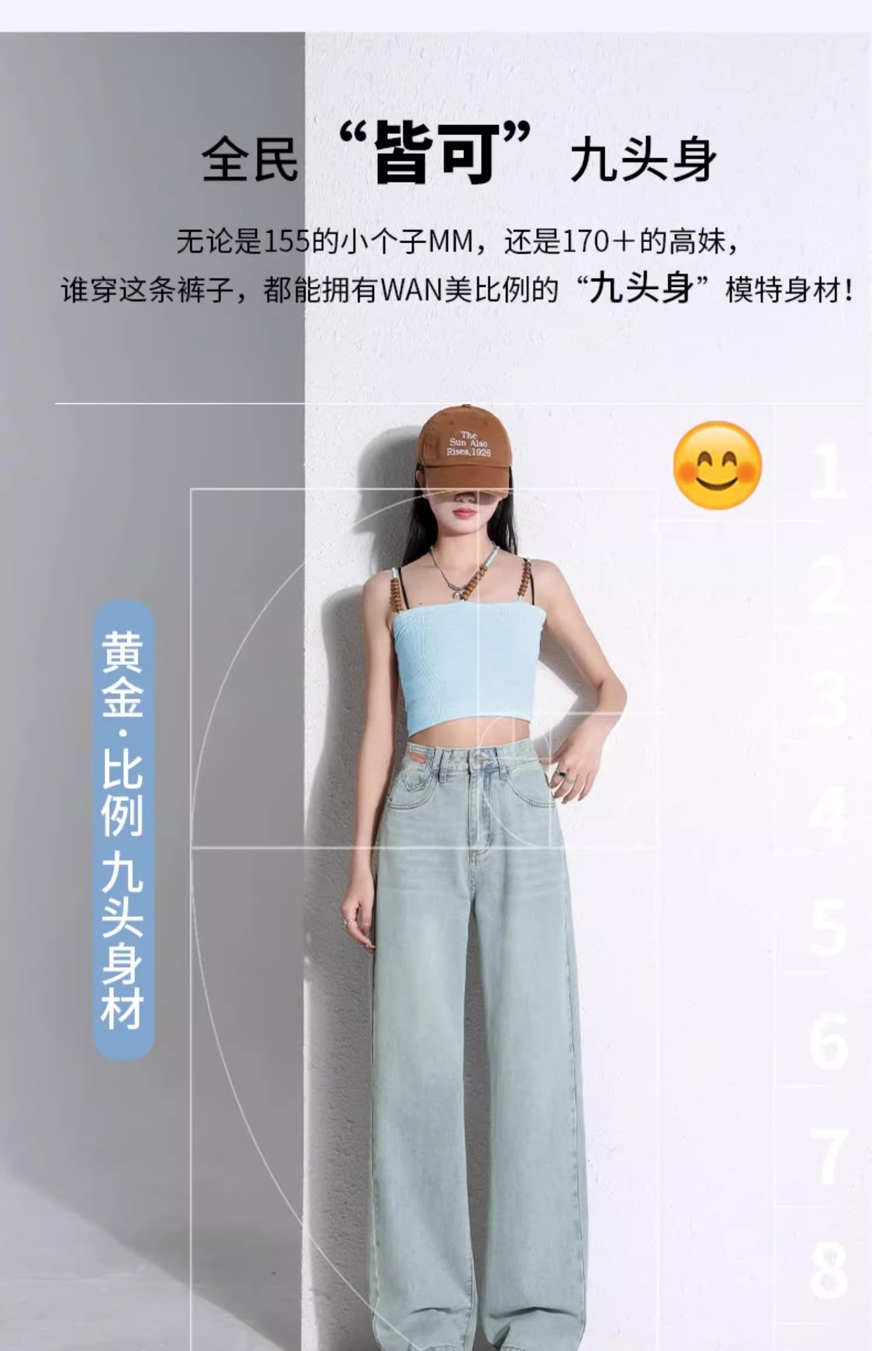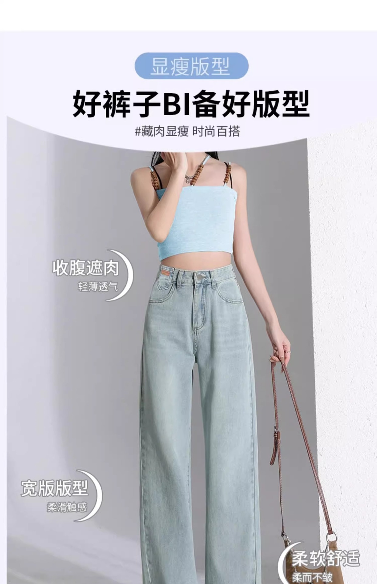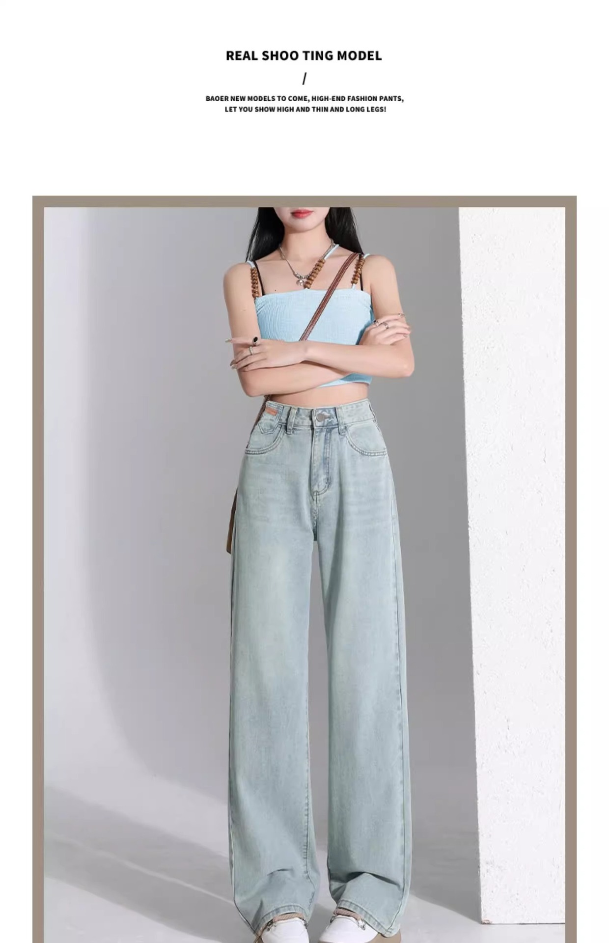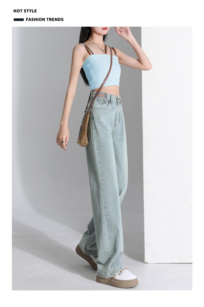 여성용 자수 스트레이트 청바지, 2025 봄 가을 신상 하이웨이스트 드레이프 라이트 컬러 디자인, 슬림핏 와이드 팬츠스토어 가기