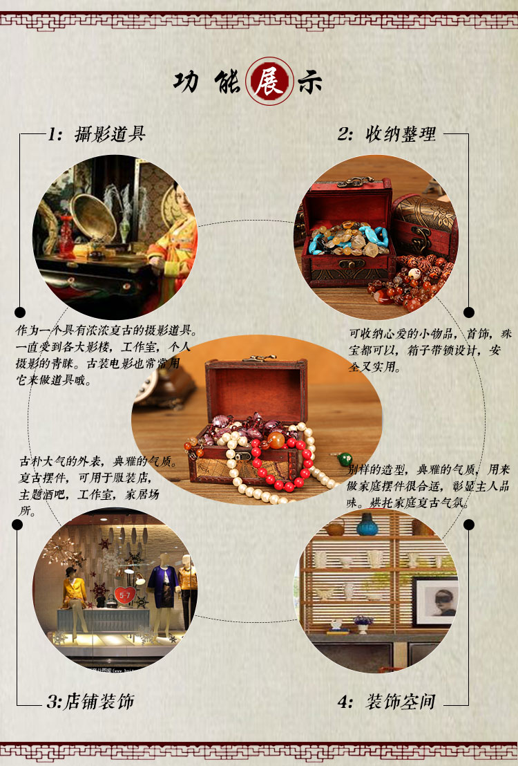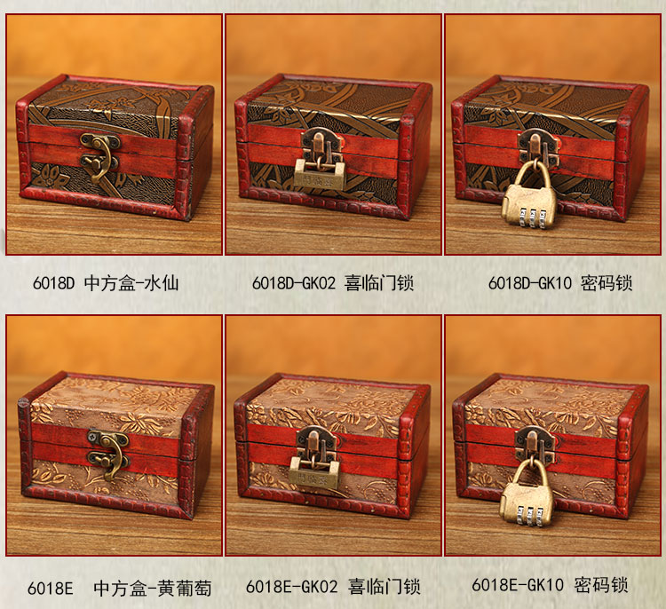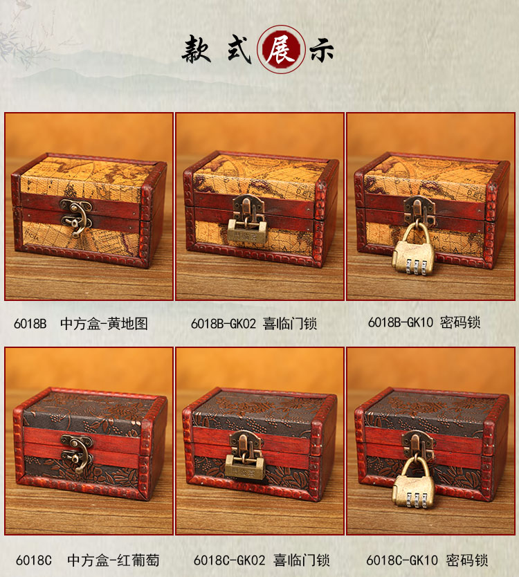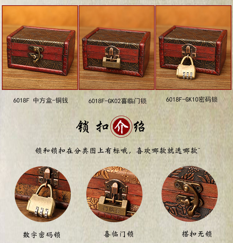 빈티지 작은 나무 상자 잠금 보석 상자 보석 저장 상자 암호 상자 키 저장 나무 골동품 Baiqin Xuan스토어 가기