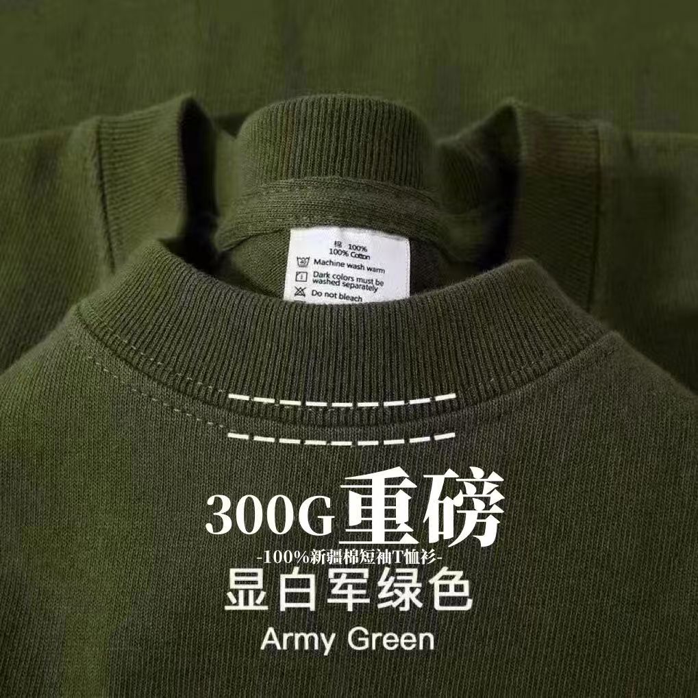 헤비 300g 코튼 티셔츠 남성용 솔리드 컬러 크루 넥 반팔 여성용 반팔 캐주얼 심플베이스 셔츠스토어 가기