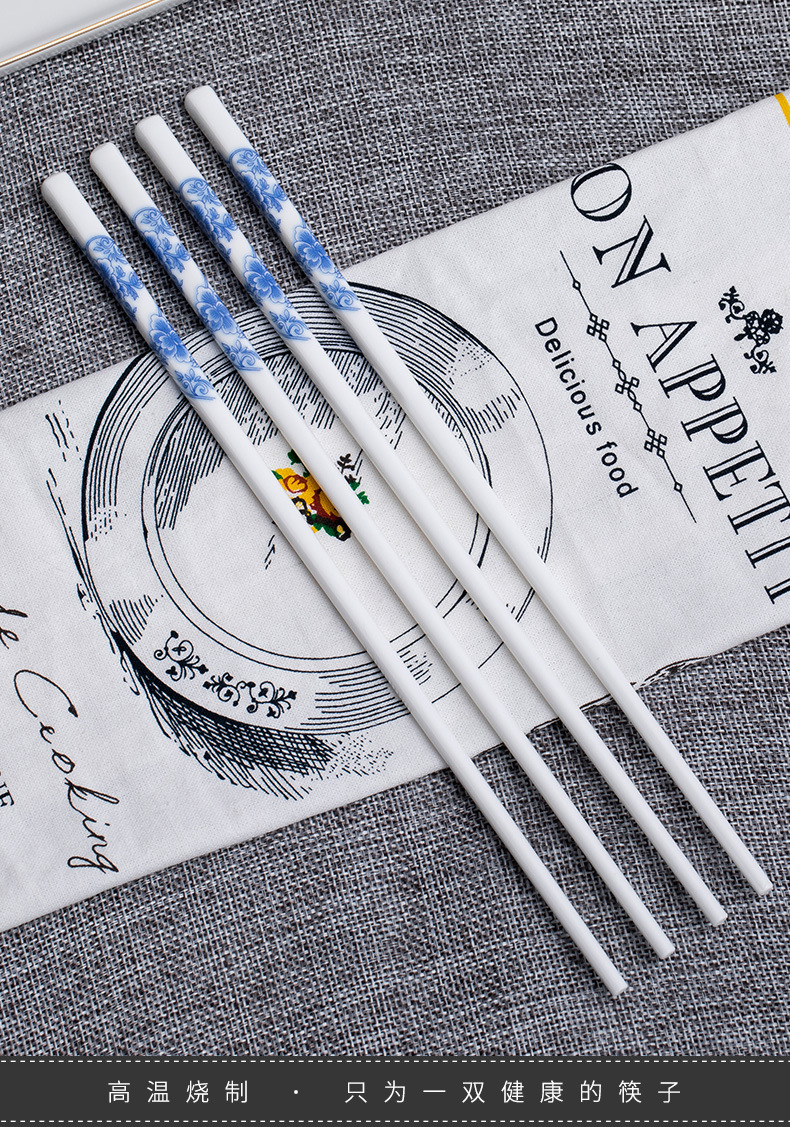 10 쌍의 세라믹 젓가락 파란색과 흰색 젓가락 가정용 도자기 젓가락이 식기 세척기 젓가락에 곰팡이가 생겼다.스토어 가기