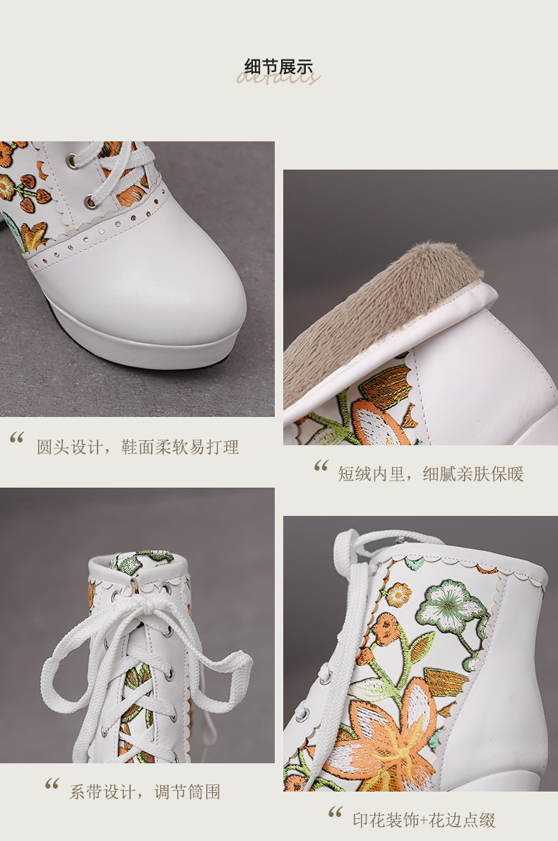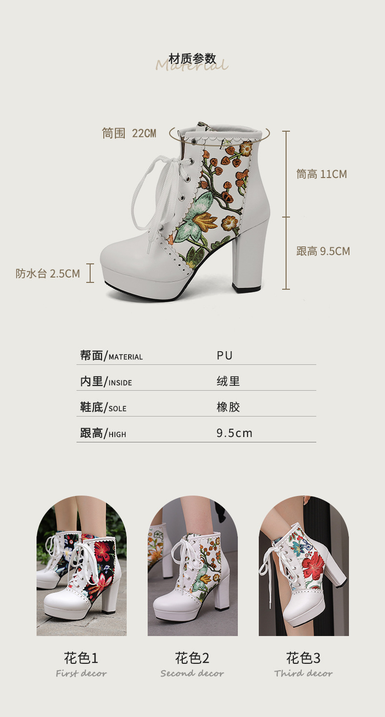 부츠 높은 굽 여성 신발 두꺼운 전면 레이스 업 마틴 부츠 짧은 배럴 컬러 블록 가죽 부츠 대외 무역 달콤한 인쇄 여성의 새로운 성인스토어 가기