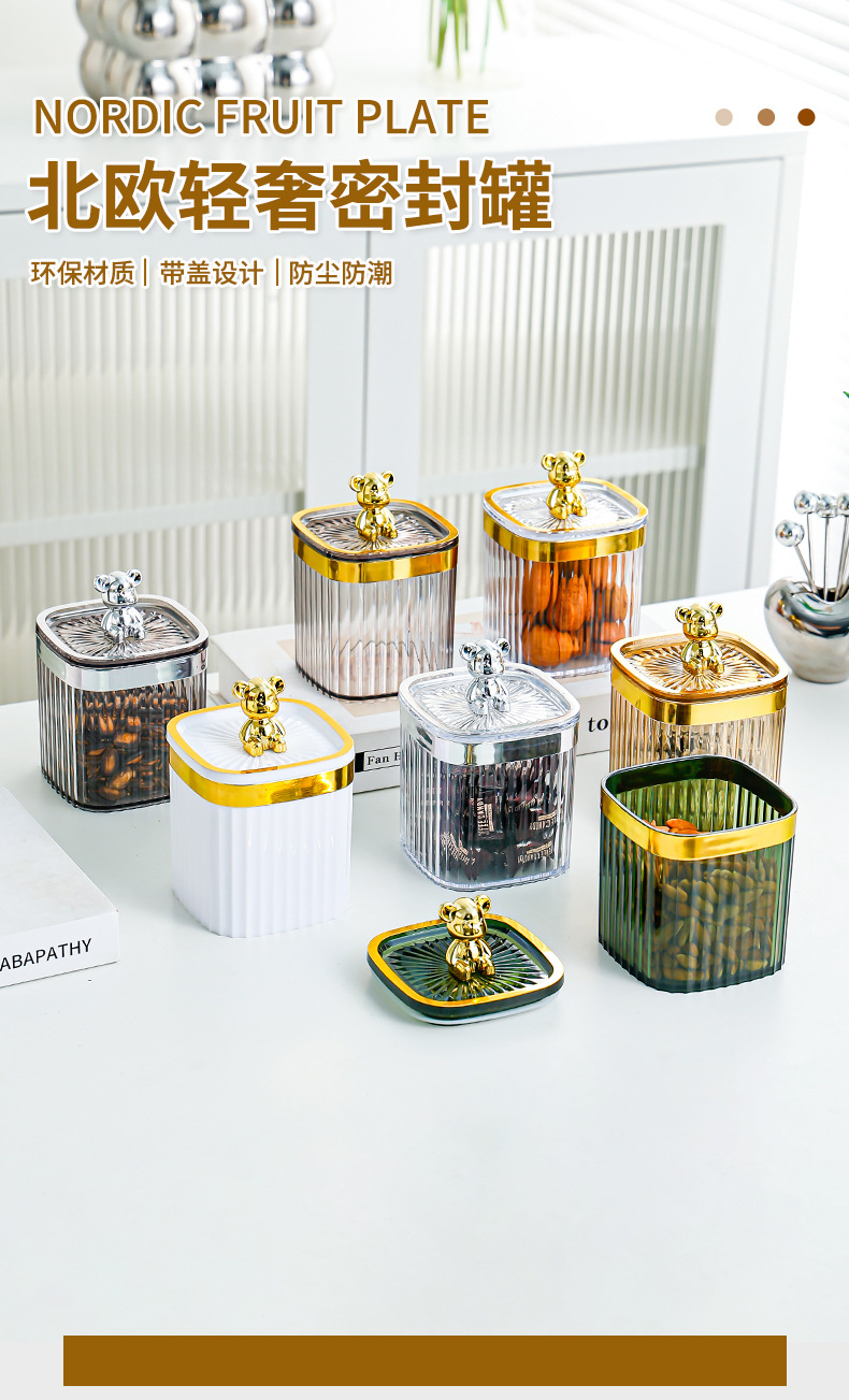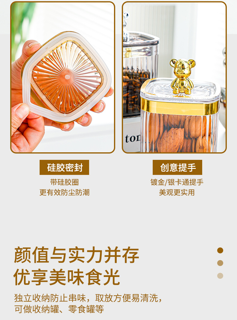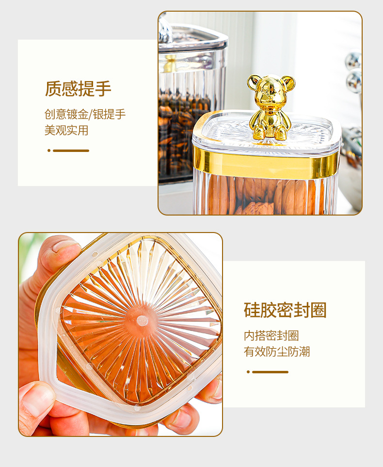 • 银熊透明银边方圆密封罐