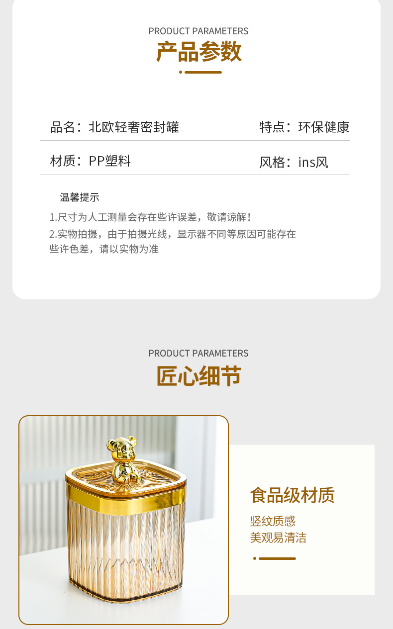 • 金熊琥珀金边方圆密封罐