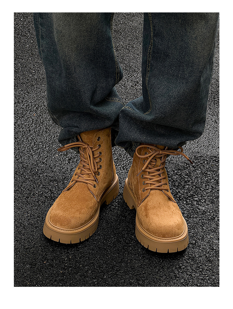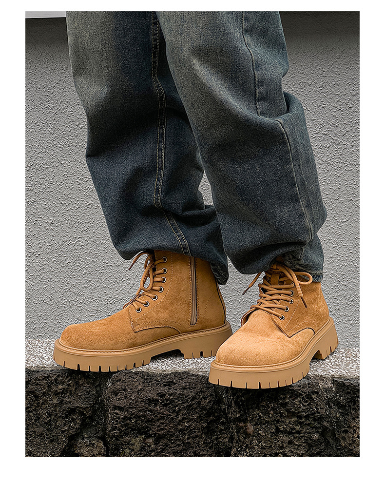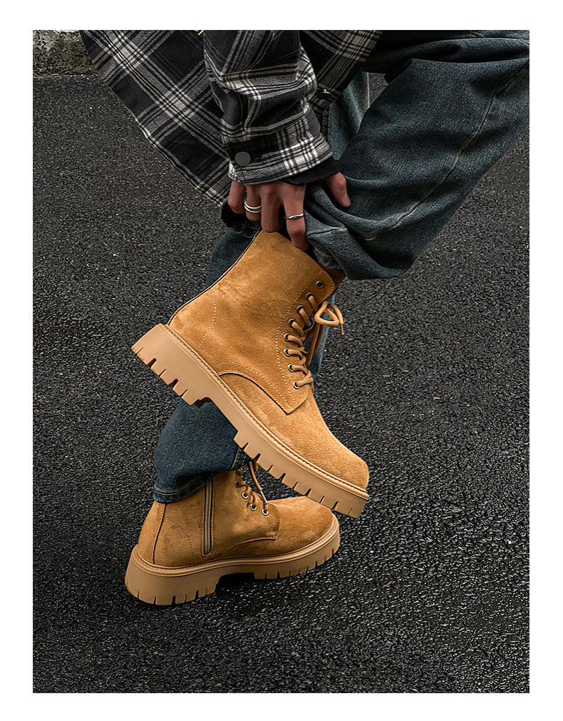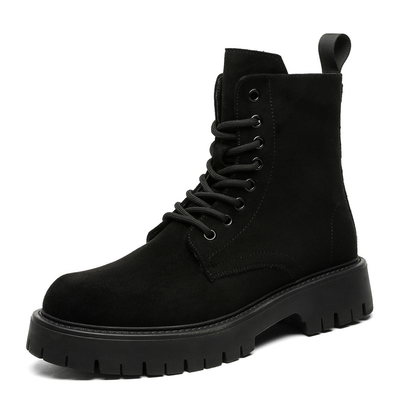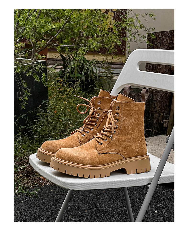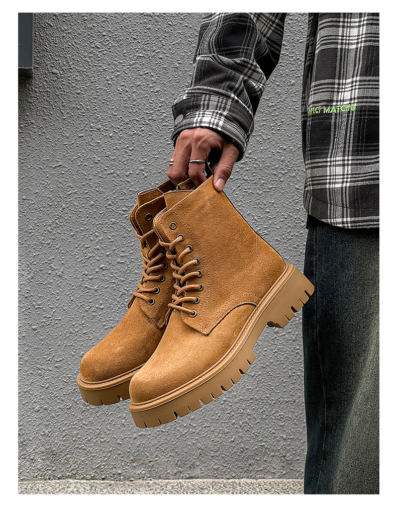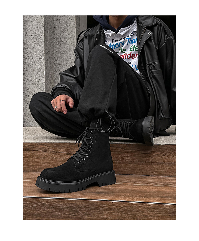 남자 2024 가을과 겨울 새로운 최고급 마틴 부츠 영국 스타일 두꺼운 플러스 사이즈 레이스 업 기모 미드 톱 부츠 증가스토어 가기