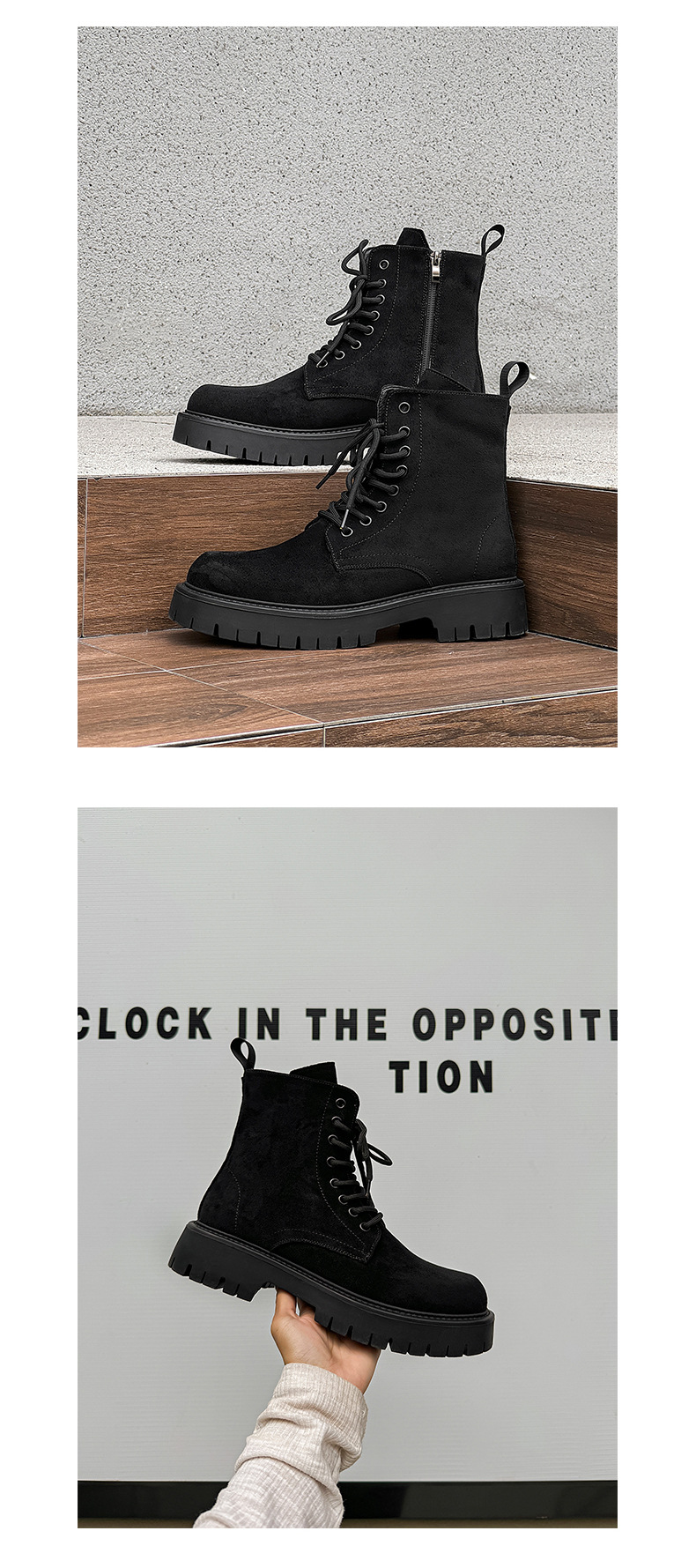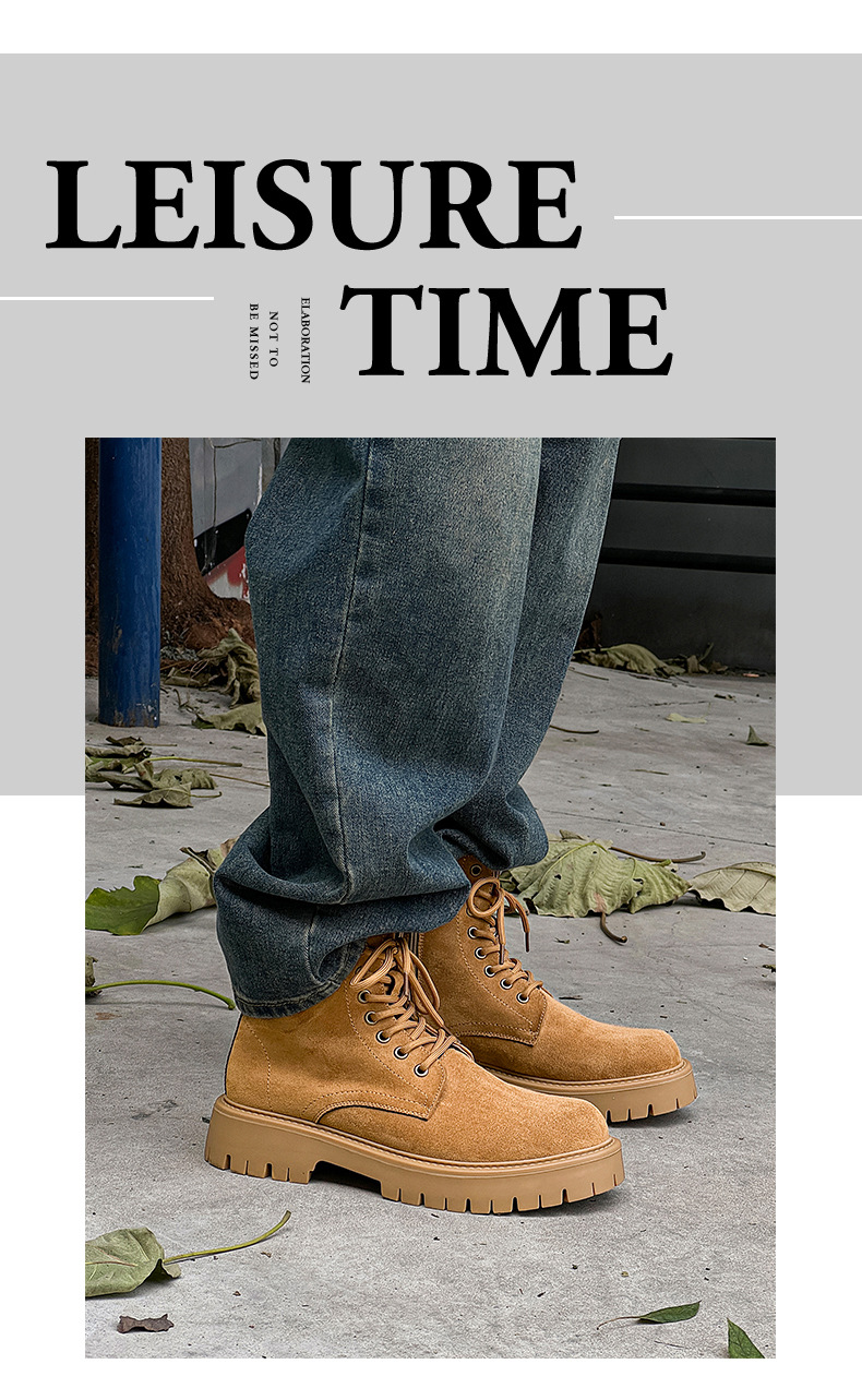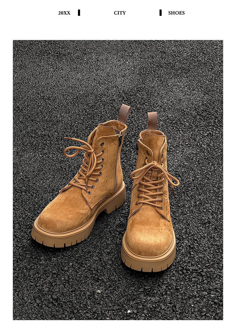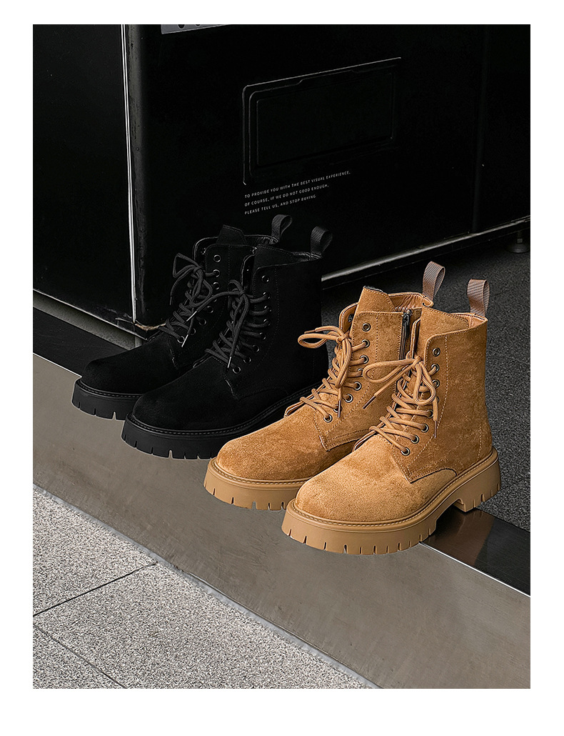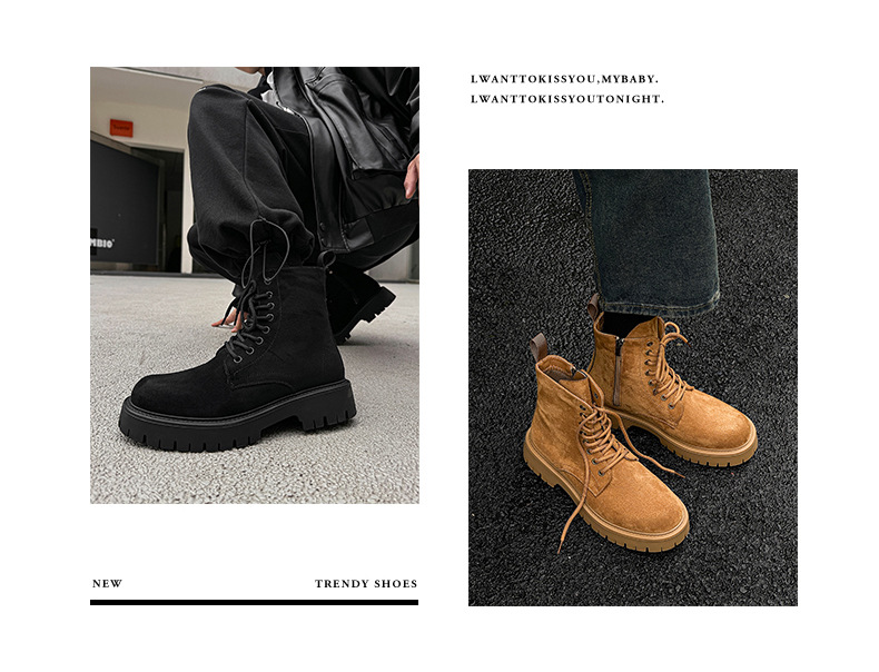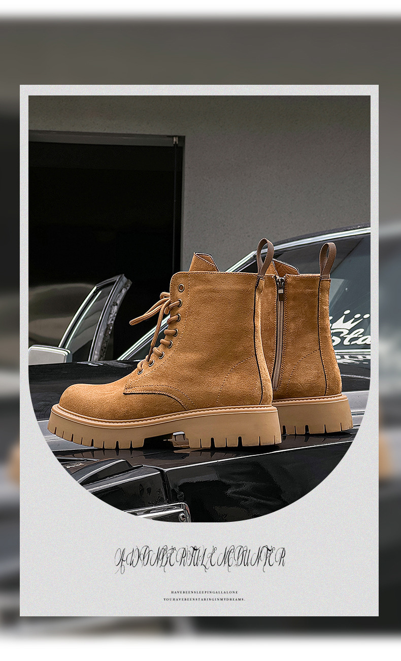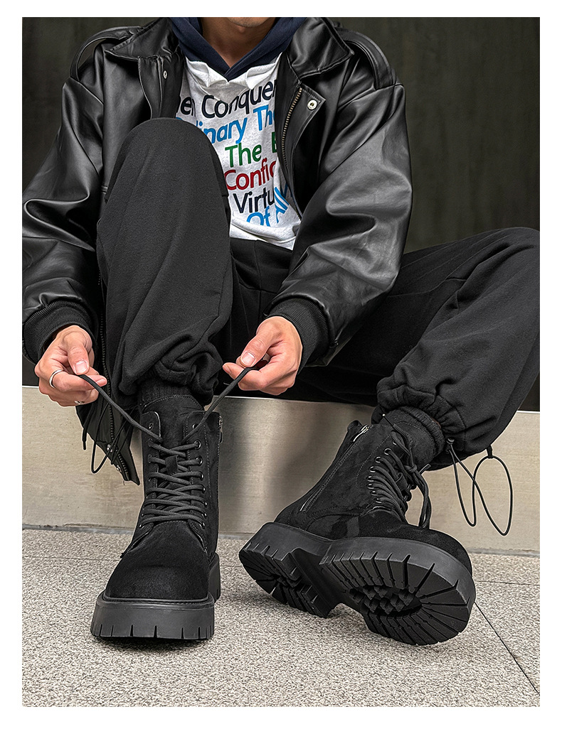 남자 2024 가을과 겨울 새로운 최고급 마틴 부츠 영국 스타일 두꺼운 플러스 사이즈 레이스 업 기모 미드 톱 부츠 증가스토어 가기