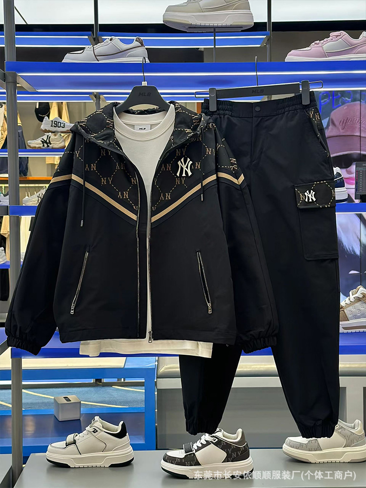MLB 후드 아웃 도어 재킷 25 새로운 자카드 스티칭 자수 표준 루즈 올 매치 재킷