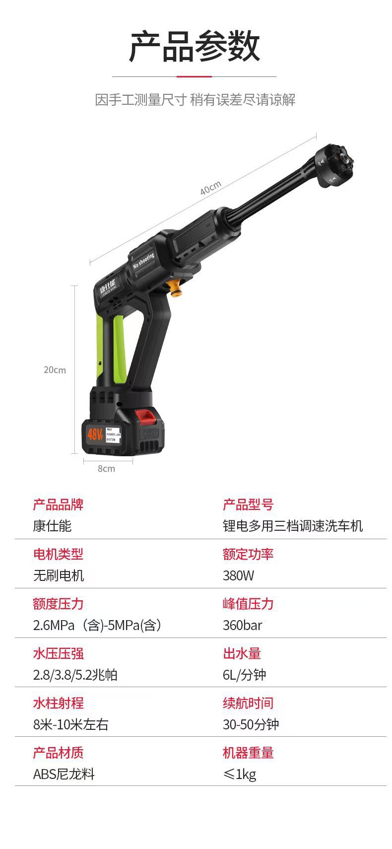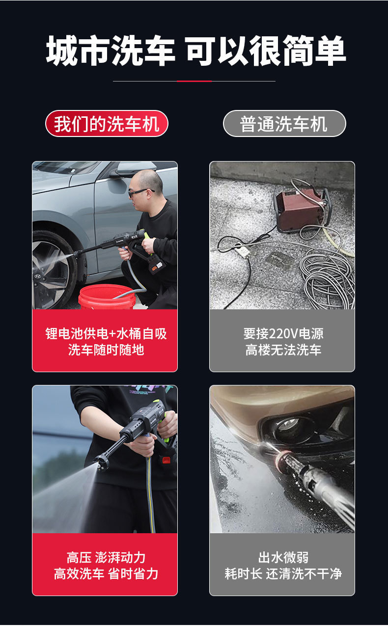 무선 자동차 세탁기 고성능 진짜 브러시리스 리튬 물 총 장거리 높은 내구성 자동차 가정용 상업용 플러셔
