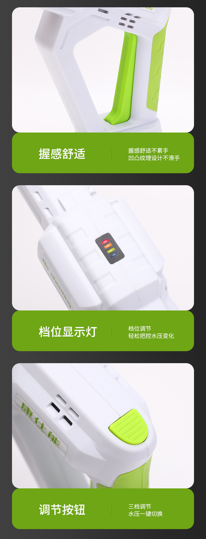 • 검정색 및 녹색 브러시리스 모터, 3단계 전압 조절, 1회 충전 및 1회 충전
